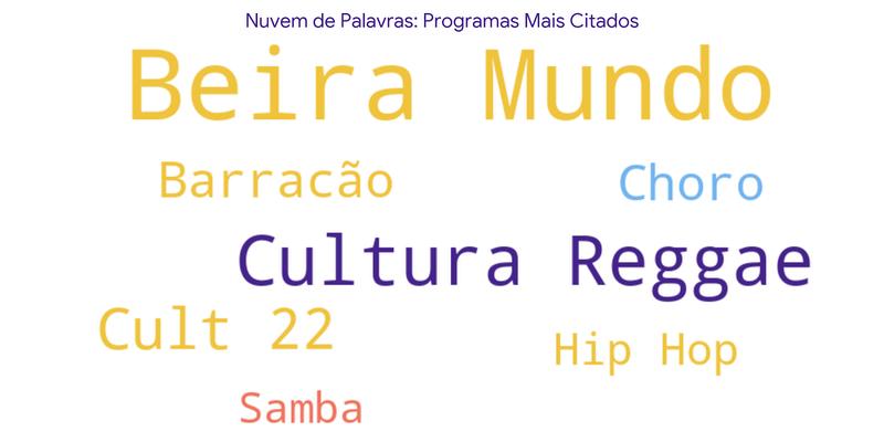 Programas específicos foram mencionados, com destaque para o Cult 22 (18,9%), Cultura Jazz (5,7%), Beira Mundo (4,6%), República Blues (3,4%), Um piano ao cair da noite e Canta Nordeste (2,3%).