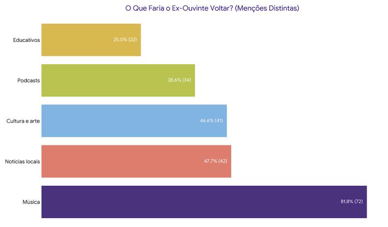 O principal fator para o retorno dos ex-ouvintes à emissora é o conteúdo musical, citado por 81,8% do grupo.