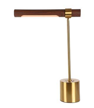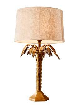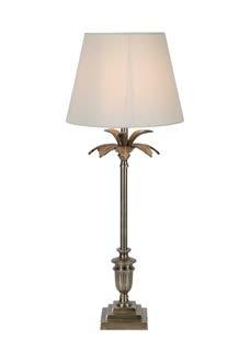 Nickel/Wood Palm Lamp with Nat Linen Shade
