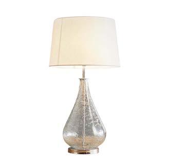 Charlotte Glass and Nickel Lamp with White Linen Shade