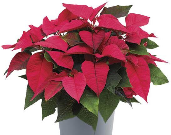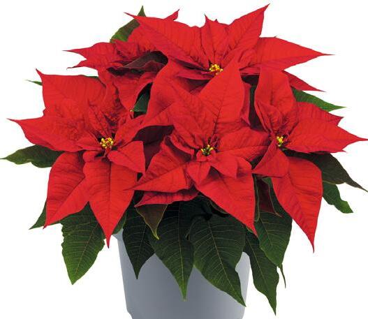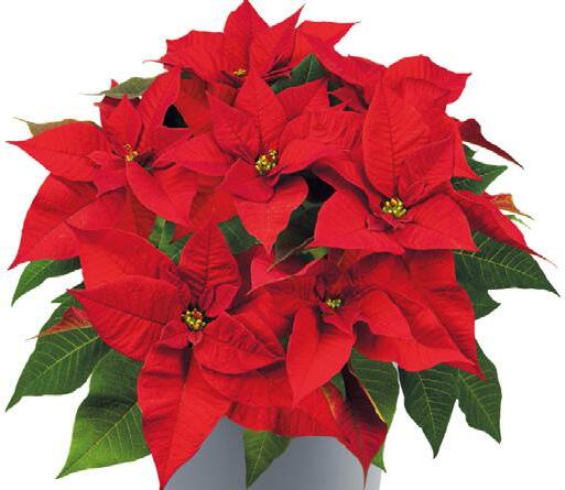 EN The all-round Poinsettia for 6-12 cm pots with mediumcompact plant vigour. Reaction time is 7 weeks. Plants flower with bright red oak-leaved bracts. Needs less PGRs.