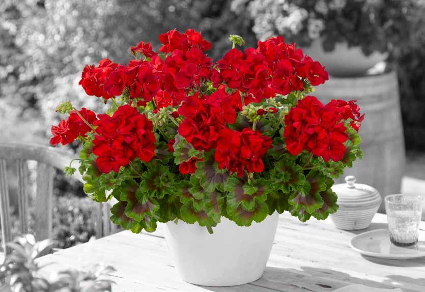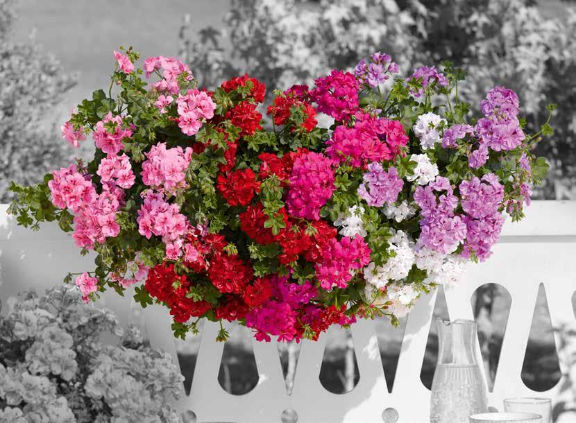 Zonale interspecific GALAXY™ X LINE Galaxy™ Dark Red 9 Galaxy™ Red 9 Galaxy™ Rose 8 Galaxy™ Salmon 8 Galaxy™ Lilac 10 Galaxy™ White impr. 10 Zonale green leaved TREND L LINE Trend Sophie Dark Red 13 Trend Julia Red 13 Trend Emilia Orange 12 Trend Nora Salmon 12 Trend Salmon 13 Trend Hanna Hot Pink 13 Trend Gesa Light Pink 14 Trend Yvonne Neon Impr. 14 Trend Lilac 14 Trend Vera Pink Eye 14 Trend Lasse White 15 SMART M LINE Smart Senna Red 17 Smart Maria Scarlet 17 Smart Patricia Orange 16 Smart Lenja Salmon 16 Smart Carla Hot Pink 17 Smart Nina Pink Eye 17 Smart Light Pink 18 Smart Laura Purple 18 Smart Marianne Lilac 19 Smart Splash 18 Smart Jenny White 18 Zonale dark leaved DOLCE VITA M LINE Dolce Vita Gisela Dark Red 21 Dolce Vita Mylena Red 21 Dolce Vita Sylvia Orange 20 Dolce Vita Emma Salmon 20 Dolce Vita Milou Light Salmon 21 Dolce Vita Lisa Hot Coral 21 Dolce Vita Anne Pink 22 Dolce Vita Karen .......................... Light Pink impr. 22 Dolce Vita Mia Purple Eye 23 Dolce Vita Klaas Lilac 23 Dolce Vita Evi Blue impr. 22 Dolce Vita Claudio Rose Eye 22 Dolce Vita Helene Pink w. Eye 24 Dolce Vita Linus Light Pink Eye 24 Dolce Vita Stella White Sparkle 24 Dolce Vita Erika White 24 CASTELLO C LINE Castello Bernd Dark Red 27 Castello Robiene Dark Red 27 Castello Ronja Red 26 Castello Sören Salmon 26 Castello Benja Pink 27 Castello Claire Rose Red Eye 27 Castello Tammo Rose Eye 28 Castello Naomi Neon Purple 28 Castello Lea Violet 29 Castello Tessa Blue 29 Castello Raiko Lavender Eye 28 Castello Isabella White 28 Peltatum double flowered BIG5 ® X LINE Big5® Red 33 Big5® Light Pink 33 Big5® Neon Pink 32 Big5® Amethyst 32 Big5® White Angel 33 SUNFLAIR ® L LINE Sunflair® Ruben Dark Red 35 Sunflair® Paula Red 35 Sunflair® Josina Hot Pink 34 Sunflair® Linda Pink 34 Sunflair® Amy Amethyst 35 Sunflair® Lollipop Chris Red White 36 Sunflair® Lollipop Candy Pink 36 Sunflair® Eva White 36 MEDIO M LINE Medio Karolina Dark Red 39 Medio Gabry Red 39 Medio Rita Hot Pink 38 Medio Ana Pink 38 Medio Erke Pink 39 Medio Marlen Amethyst 39 Medio Teske Lavender 40 Medio Lollipop Mariska Dark Red 40 Medio Lollipop Nixe Dark Red 40 Medio Lona White 40 MOONFLAIR ® M LINE Moonflair® Burgundy impr. 43 Moonflair® Red impr. 43 Moonflair® Dark Pink 42 Moonflair® Light Pink 42 Moonflair® Amethyst 43 Moonflair® Lollipop Red 44 Moonflair® White 44 Peltatum single flowered RAINBOW ® L LINE Rainbow® Red 47 Rainbow® Rose 47 Rainbow® Neon Purple 46 Rainbow® Amethyst 46 Rainbow® White 47 VILLETTA M LINE Villetta Red 49 Villetta Neon Rose 49 Villetta Lilac 48 Villetta Burgundy White 48 Villetta White 49 BALCON X LINE Balcon Red/Pink/Lilac/Dark Pink/ Desrumeaux/Stellena/Noa 51 Balcon Polar 51 DECORA L LINE Decora Red/Pink/Lilac/Dark Pink/ Desrumeaux/Stellena/Noa 51 MINIBALCON C LINE Minibalcon Red/Pink/Lilac 51 Specials intersp. Xtreme Mila Dark Red 55 interspecific Xtreme Scarlet ....... (Alm-Geranium) 55 interspec. zonale Coral Eye 54 ZONALE Estelle 54 Friesia Scarlet 55 Nancy Purple Eye 56 Stadt Bern 56 Flic Flac Red Nova 57 Flic Flac Violet Nova 57 Summer Twist Red/Red-White/ Rose/White 57 ZONALE VARIEGATED Happythought Red 58 Happythought Pink 58 Wilhelm Langguth 59 Madame Salleron 59 Occold Shield 58 Frank Headly 58 Mrs. Pollock 59 Contrast 59 Distinction 60 Chocolate 60 Vancouver Centennial 60 Lotusland 60 PELTATUM VARIEGATED Evka Red/Evka Rose/ Francis Parmeter 61 SCENTED Orange Fizz 61 Concolor Lace 61 P. Fragrans 61 CRISPUM Florella Bicolour 63 Florella Purple 63 Florella Magenta 62 Florella Velvet 62