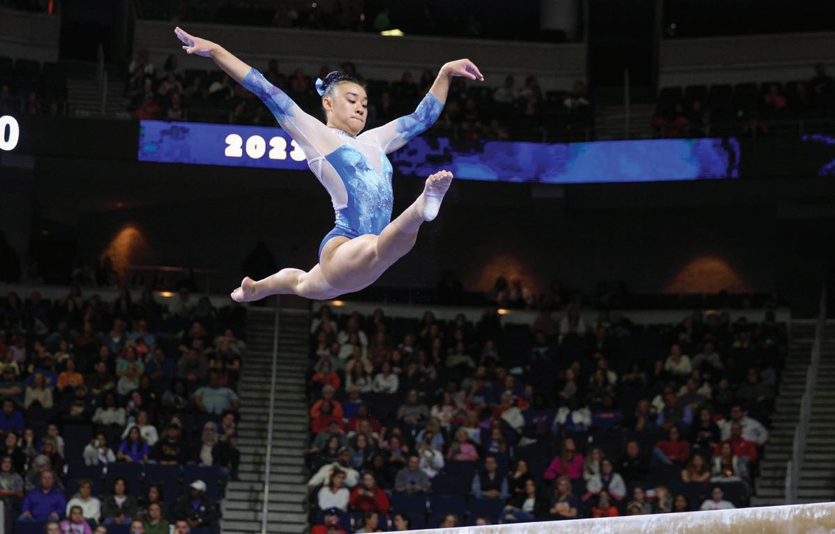 Trinity Thomas reached familiar heights and earned the title of allaround Southeastern Conference champion. Her performance helped the Gators clinch the 2023 SEC Championship.