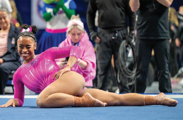 No one shined brighter than sophomore Skye Blakely, who scored the team’s lone 10.000 of the Tempe Regional with a pictureperfect bar routine April 2.