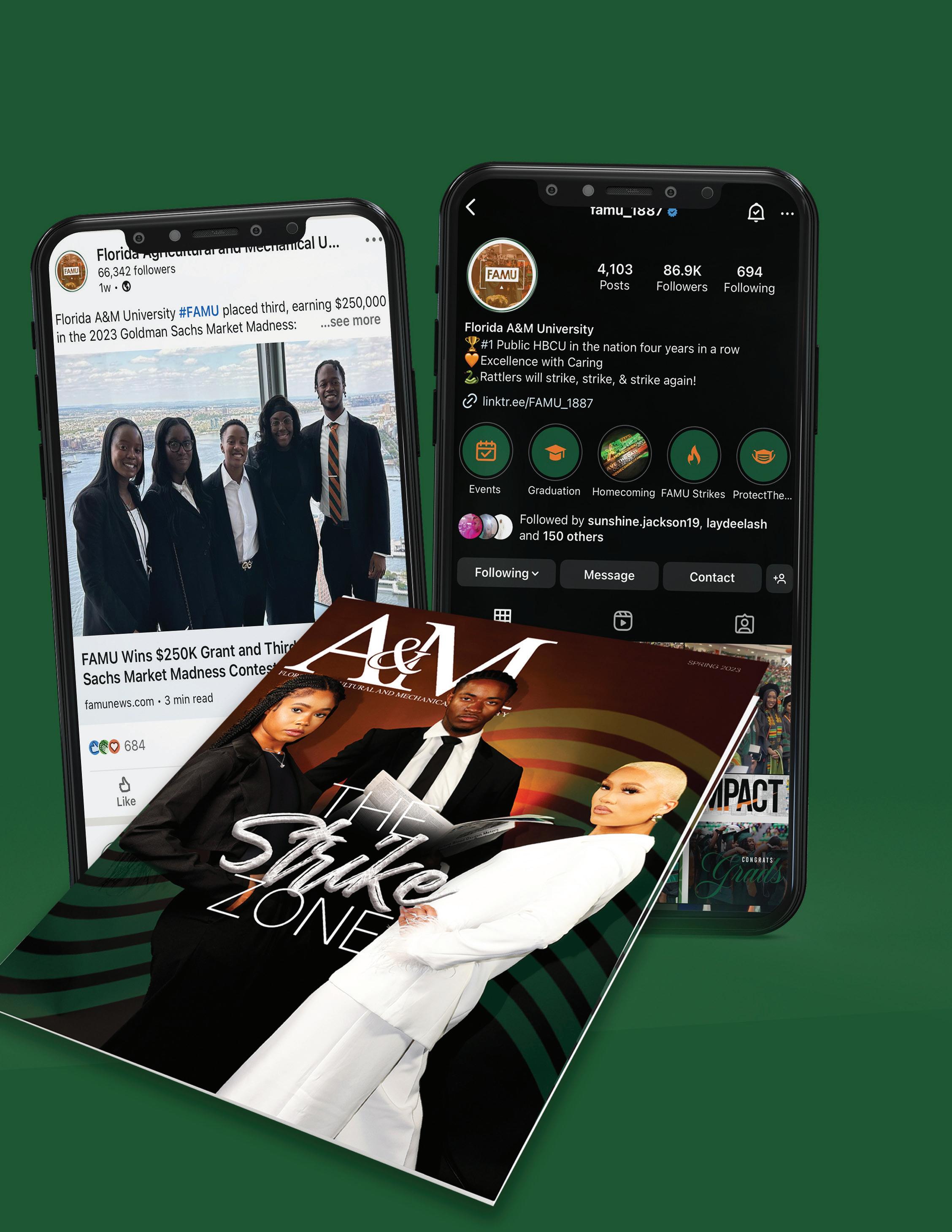 The Office of Communications is the official source of news and information about the University. Our mission is to represent and promote the University and its faculty, students and programs to a variety of constituents, including employees, alumni, media, government officials, businesses, students, parents and other stakeholders. In pursuing our vision and achieving our mission, we plan, organize and host signature events, connect with a wide vibrant audience of alumni, and stakeholders throughout major social media platforms, and tell the FAMU story through the award winning bi-annual A&M Magazine. We hope to continue building on our reputation by partnering with your organization to reach our students in an academic environment.