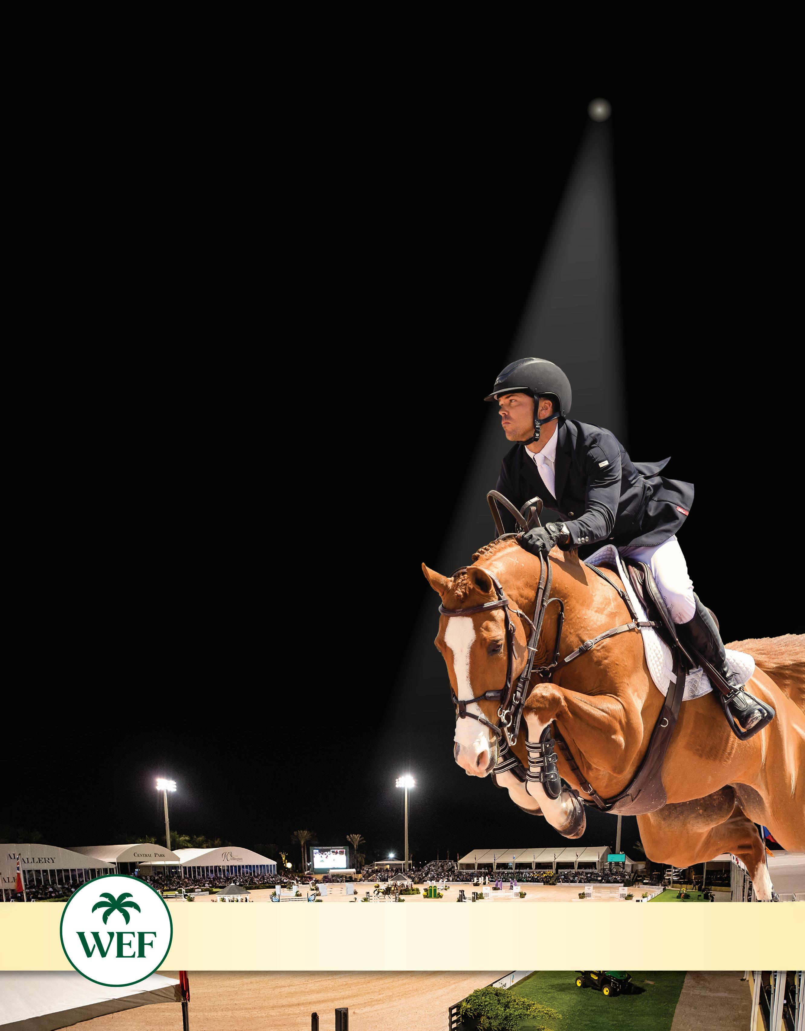 Every Saturday from January 7 - March 25 FREE GENERAL ADMISSION • PARKING $20/CAR • Gates open at 6:00 p.m. Saturday Night Lights World-class equestrian action, entertainment, dining and shopping for the whole family! January 7 $75,000 Battle of the Sexes presented by Wellington Regional Medical Center January 14 $140,000 Southern Arches Grand Prix CSI3* January 21 $50,000 Palm Beach Equine Clinic National Grand Prix January 28 $216,000 NetJets Grand Prix CSI4* February 4 Great Charity Challenge sponsored by Fidelity Investments® February 11 $406,000 Fidelity Investments® Grand Prix CSI5* February 18 $100,000 WCHR/USHJA Hunter Spectacular February 25 $406,000 Lugano Diamonds Grand Prix CSI5* March 4 $150,000 Nations Cup CSIO4* presented by IDA Development March 11 $406,000 Wellington Equestrian Realty Grand Prix CSI5* March 18 $216,000 Horseware Ireland Grand Prix CSI4* March 25 $140,000 1.50m Championship Jumper Classic Series Final CSI4* Wellington International 3400 Equestrian Club Drive • Wellington, FL 33414 • equestriansport.com • (561) 793-JUMP