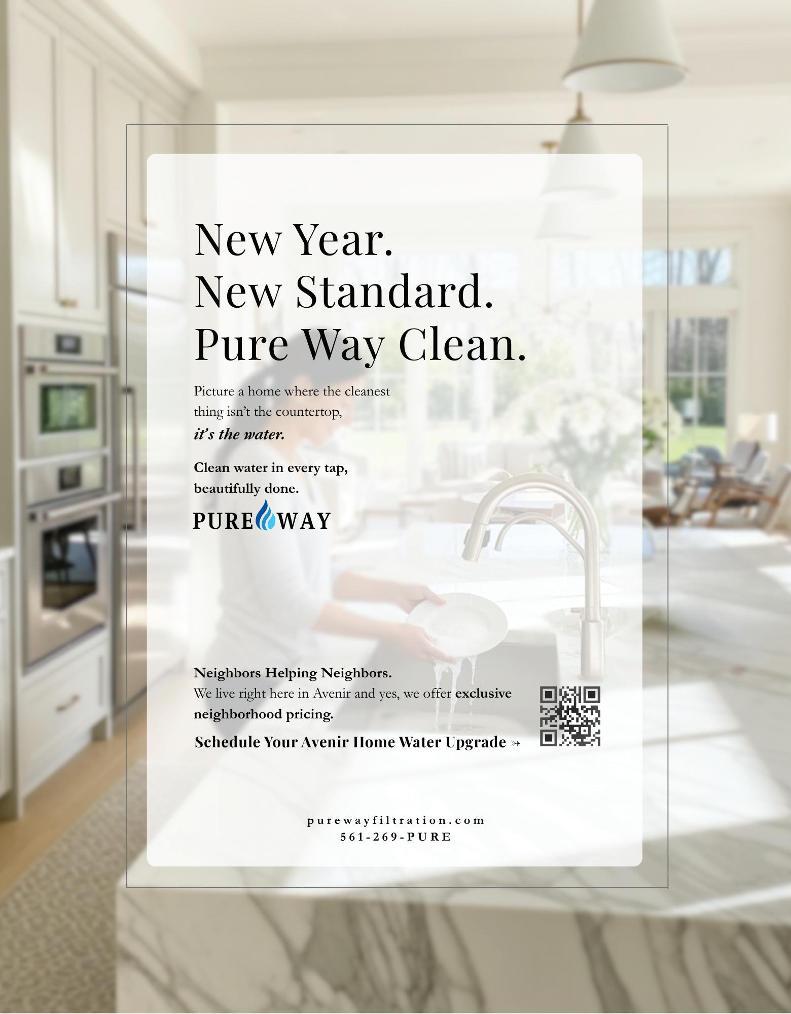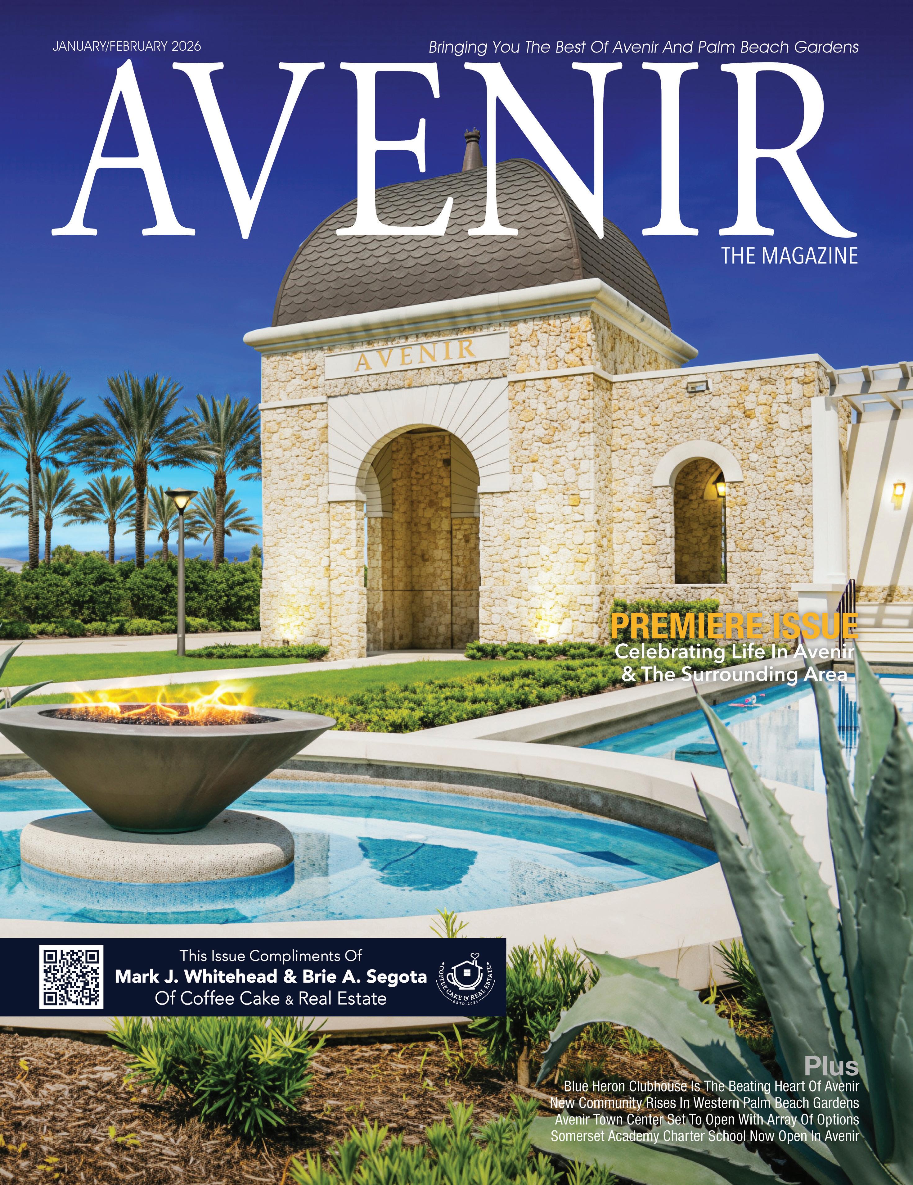 In this issue, we tour Blue Heron, Avenir’s east clubhouse, and meet Lifestyle Director Patrice Chiaramonte, as well as learn the history behind the unique Avenir community. We also preview the array of dining, retail and lifestyle options set to open later this year at Avenir Town Center. Next, we tour the newly opened Somerset Academy Avenir with Principal Rebecca Pavich. Finally, we meet the Avenir residents behind the innovative firm Coffee Cake And Real Estate. Reaching beyond the borders of Avenir, we explore the fun offerings at Charm Pop Party, sample the fare at the nearby Lewis Prime Grill and explore the growing sport of padel with a look at the new Xcel Padel facility in Westlake.