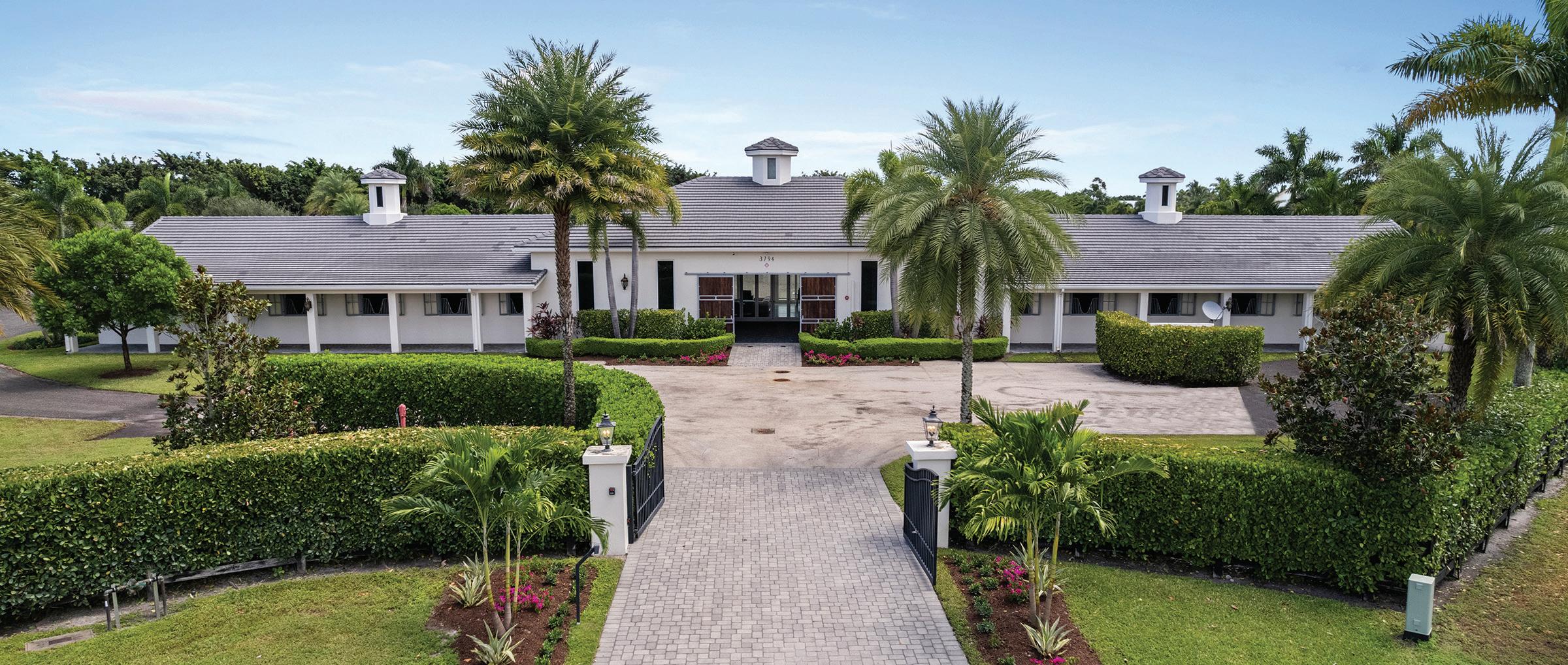 WELCOME TO SHUTTERFLY WAY Ideally located in Grand Prix Village South, ‘’Wellington’s Oceanfront’’. This 8.4-acre property features a Loddon Equestrian, Ltd. 20-stall Grand Prix Stable, designed in the UK and constructed on-site. The property stands alone on Shutterfly Way at the end of a nicely appointed circular brick paver cul-de-sac, gated entry, totally private, secure, no traffic. Short hack to WEF show grounds. All architectural hardware shipped from England, steel double-hang windows with u-shape grates and matching gray powder coat stalls and teak work. A forepart brick paver catwalk to Henderson sliding door open to a magnificent bright interior which boasts 3-glass roof battlements for natural light
