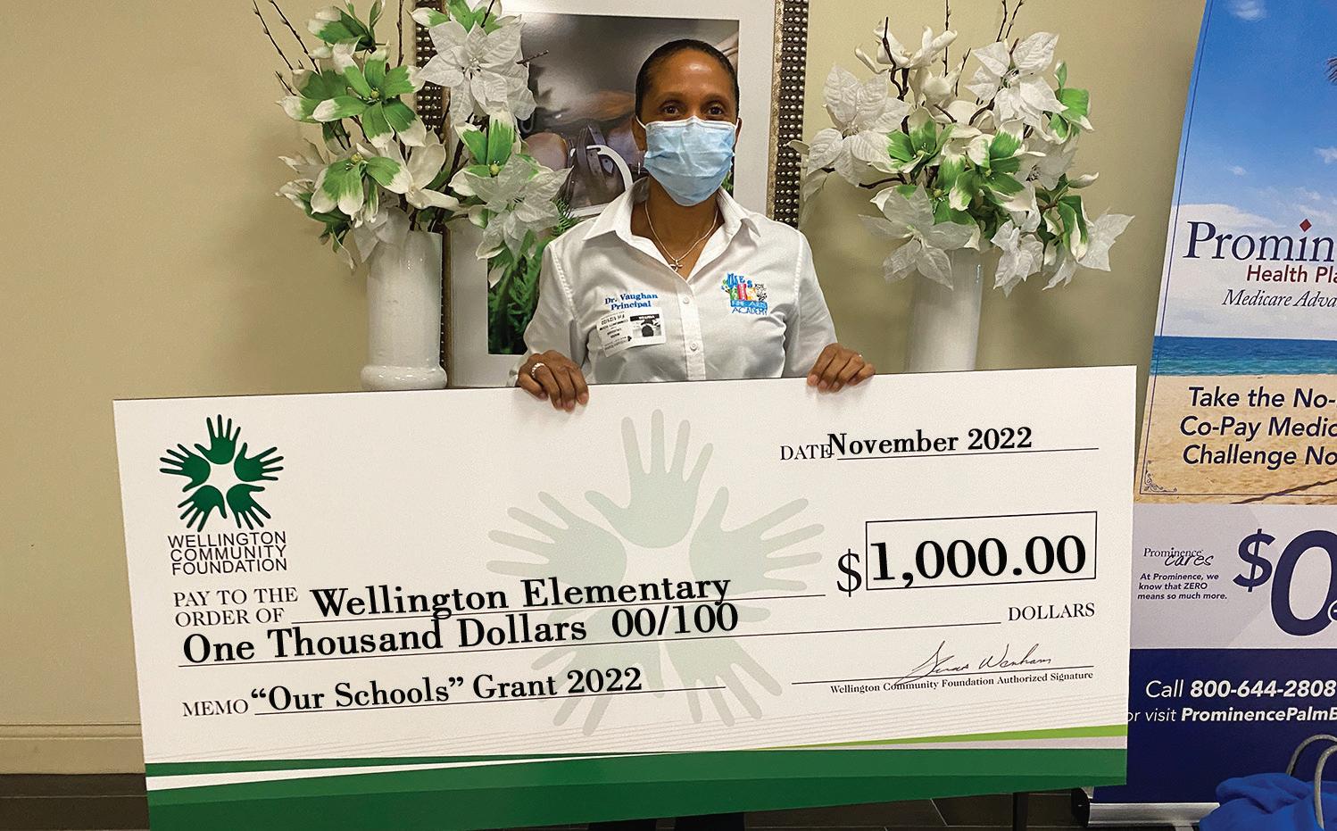 Wellington Elementary School is the 11th recipient of the “Our Schools” Arts Program Grant 2022, a new Wellington Community Foundation initiative. Shown below is Wellington Elementary School Principal Dr. Maria Vaughan with the big check for her school.