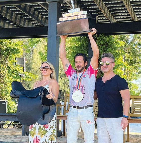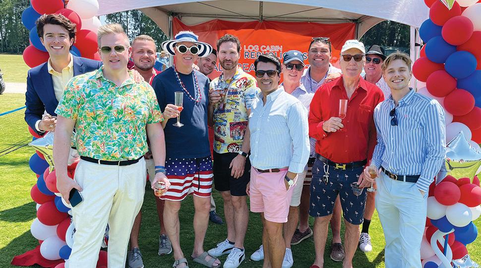 2024 Lexus International Gay Polo Tournament, presented by Douglas Elliman Real Estate, was held Saturday, April 6 at the Patagones Polo Club in Wellington. This year’s tournament beneficiary was the Elton John AIDS Foundation. Shown here, Cameron Gaynor and Adam Glick of the Elton John AIDS Foundation accept a $100,000 donation from Margaret Duprey and Chip McKenney. MORE PHOTOS, PAGE 5 PHOTO BY JOSHUA MANNING/TOWN-CRIER