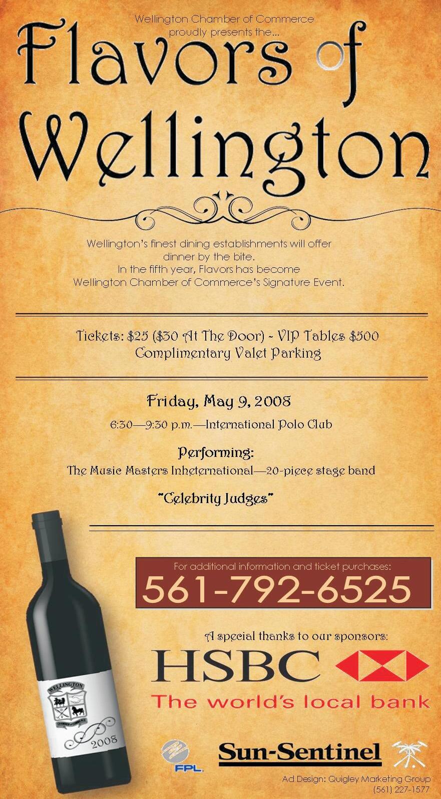 The Wellington Chamber of Commerce still has tickets available for Flavors 2008, which will take place Friday, May 9 from 6:30 to 9:30 p.m. at the International Polo Club Palm Beach (3667 120th Avenue South, Wellington).