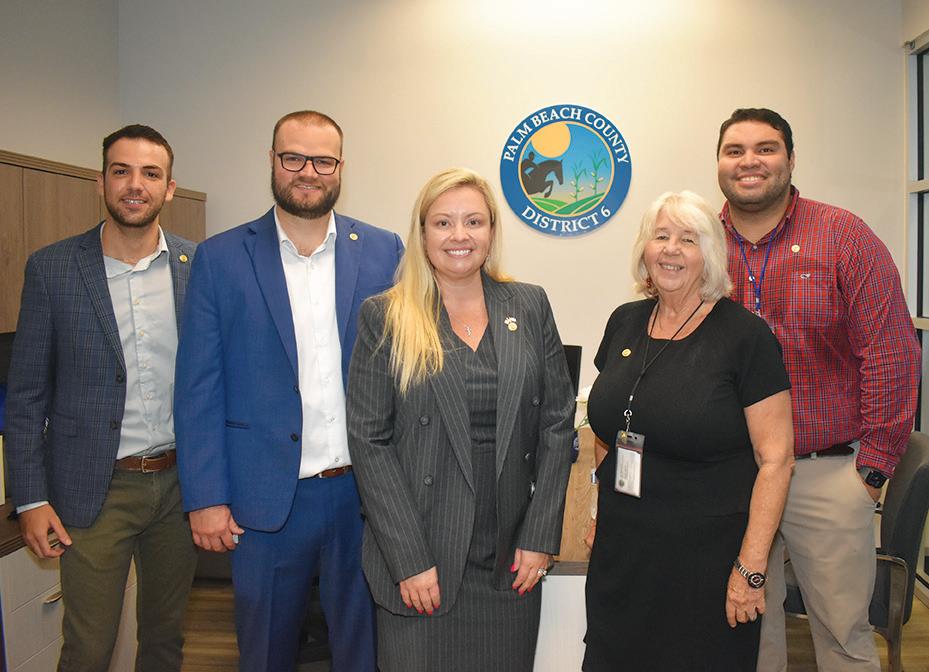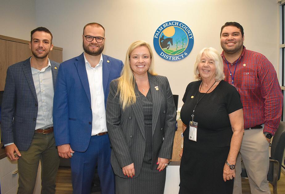 District 6 Palm Beach County Commissioner Sara Baxter held a celebration Friday, Aug. 4 to mark the opening of her office in the Midwestern Communities Service Center, located at 200 Civic Center Way in Royal Palm Beach. Shown above are commission aides Joe Lafauci and Kyle Drexler, County Commissioner Sara Baxter, Glades aide Regina Bohlen and intern Steve Avila. MORE PHOTOS, PAGE 16