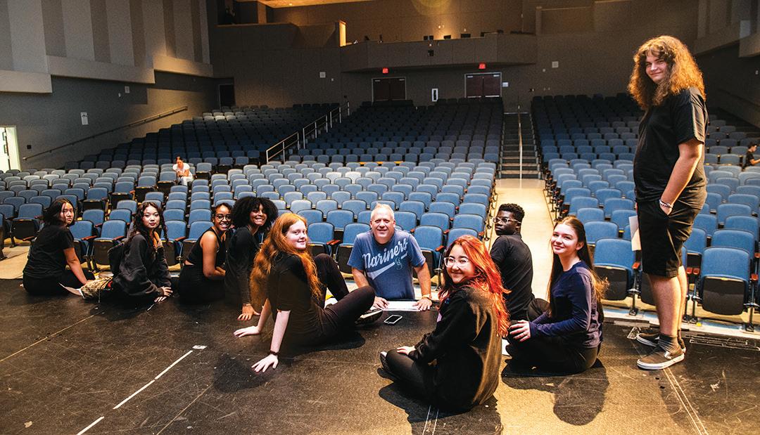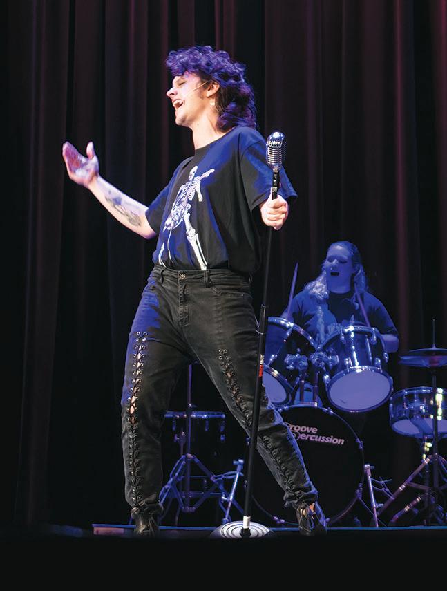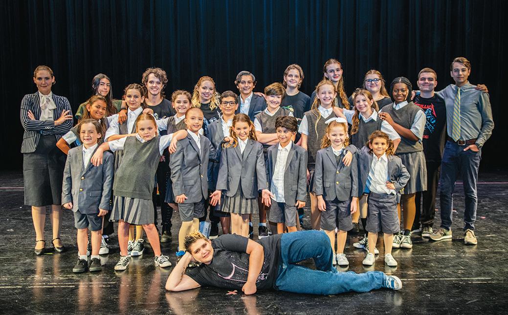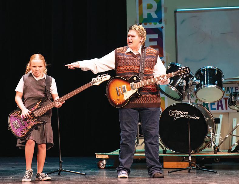 On Saturday, Aug. 5 and Sunday Aug. 6, Theatre Arts Productions (TAP) featured a production of the hit musical School of Rock at the Wellington High School theater. School of Rock featured a cast of 28 actors and 18 stage crew members across a wide variety of ages. Based on the wellknown movie of the same name, School of Rock tells the story of Dewey Finn (Jaycie Cohen), an out-of-work rock guitarist who pretends to be a substitute teacher at a prestigious prep school run by Principal Rosalie Mullins (Dolly Romano). Shown above, the cast and stage crew take the stage for a picture just minutes before the start of the musical. MORE PHOTOS, PAGE 18
