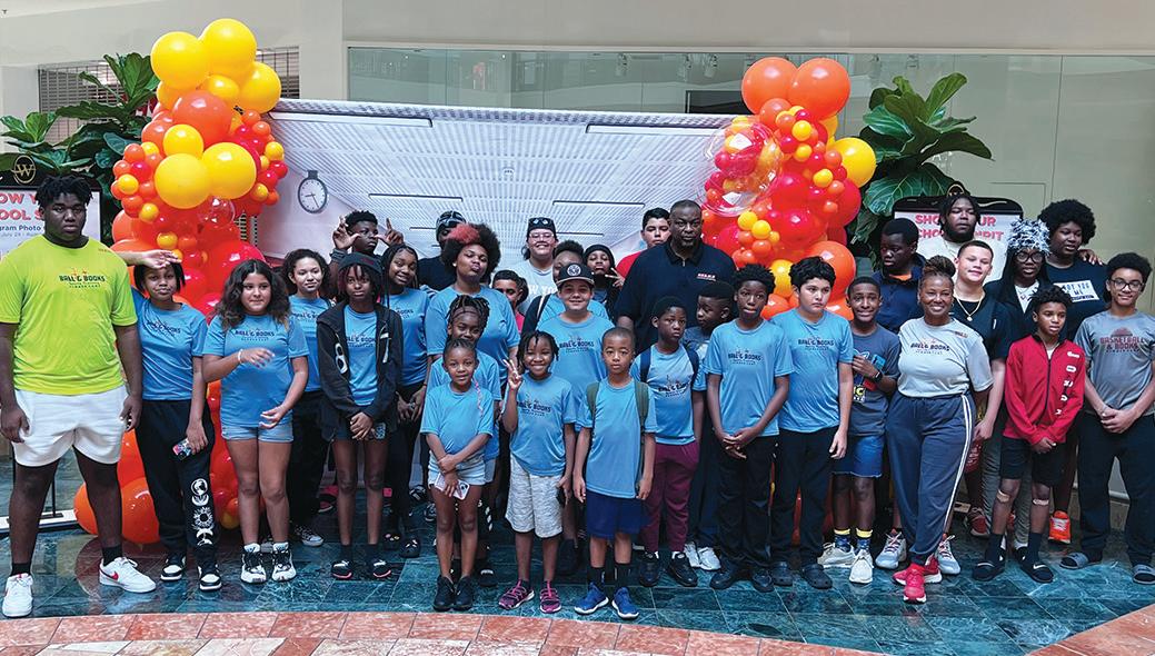 STAMP program participants gather at the Mall at Wellington Green for shoe shopping. Youth are