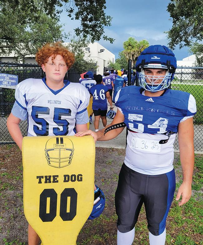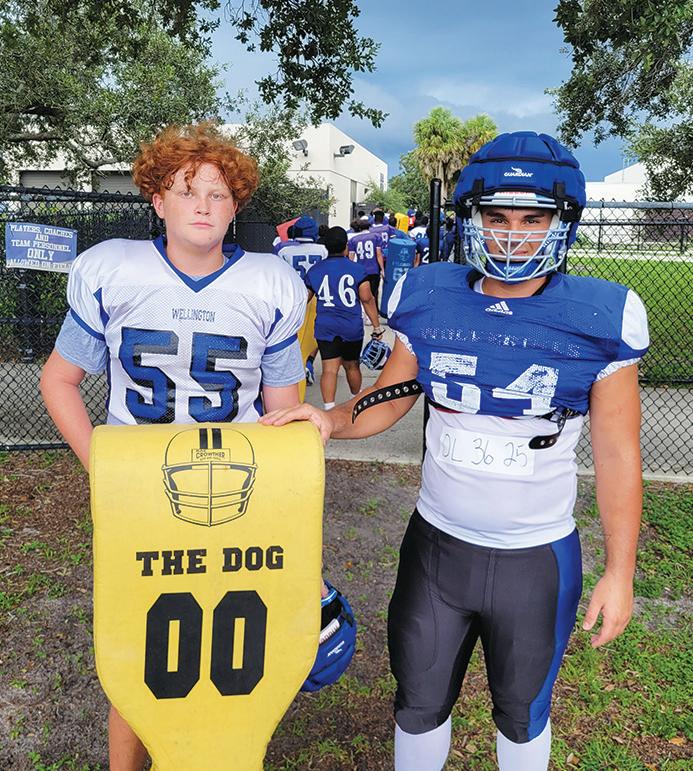 The varsity football teams at Wellington High School and Royal Palm Beach High School had similar, perspiration-filled workouts during the first two weeks of fall practice, which started Monday, July 29. According to Florida High School Athletic Association (FHSAA) rules, players were allowed to wear helmets on the first two days of practice. On the next three days of practice, the players were allowed to wear helmets and shoulder pads. Page 21