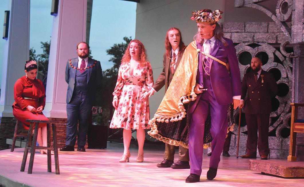 The Shakespeare by the Palms IV production of King Lear took place Thursday, July 25 through Sunday, July 28 at the Royal Palm Beach Commons Park amphitheater. Considered “one of the greatest tragedies ever performed,” this year’s professional production of King Lear was adapted and directed by Trent Stephens. Shown above is Amy Simms as King Lear with Sara Grant as Cordelia and Lee Ritter