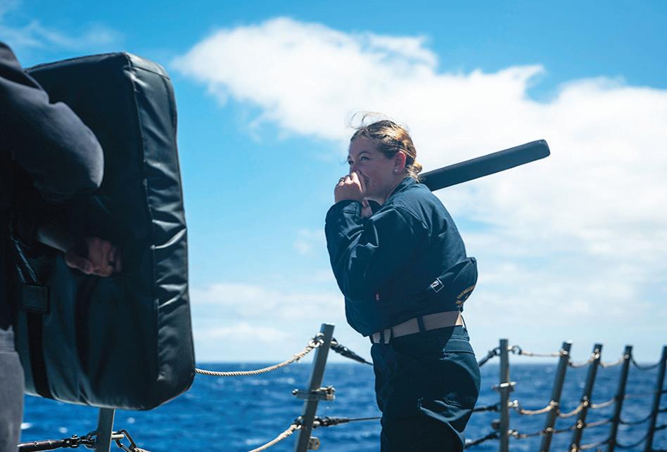 Ensign Madison Herzig, from Loxahatchee, assigned to the Arleigh Burke-class guided-missile destroyer USS William P. Lawrence (DDG 110), is shown here training with a baton in a security reaction force class during the Force Integration phase of Exercise Rim of the Pacific (RIMPAC) 2024 on July 24. Twenty-nine nations, 40 surface ships, three submarines, 14 national land forces, more than 150 aircraft and 25,000 personnel participated in RIMPAC in and around the Hawaiian Islands, June 27 to Aug. 1. The world’s largest international maritime exercise, RIMPAC provides a unique training opportunity while fostering and sustaining cooperative relationships among participants critical to ensuring the safety of sea lanes and security on the world’s oceans.