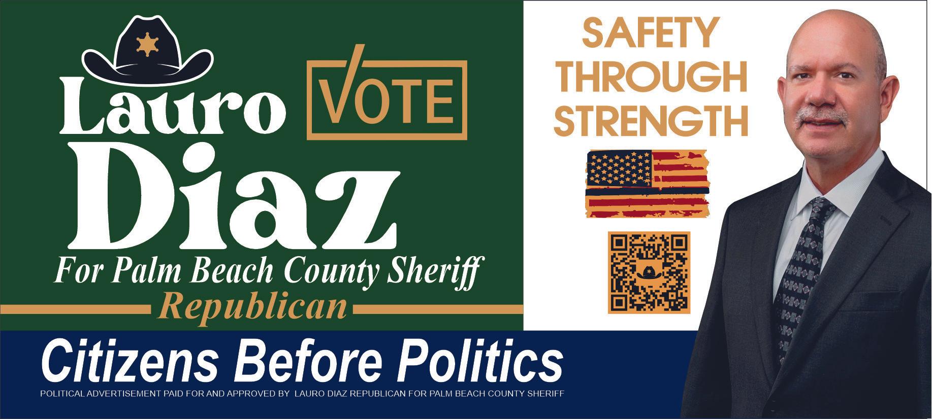 Lauro Diaz — Diaz has 37 years of law enforcement experience, including 27 spent at the Palm Beach County Sheriff’s Of-