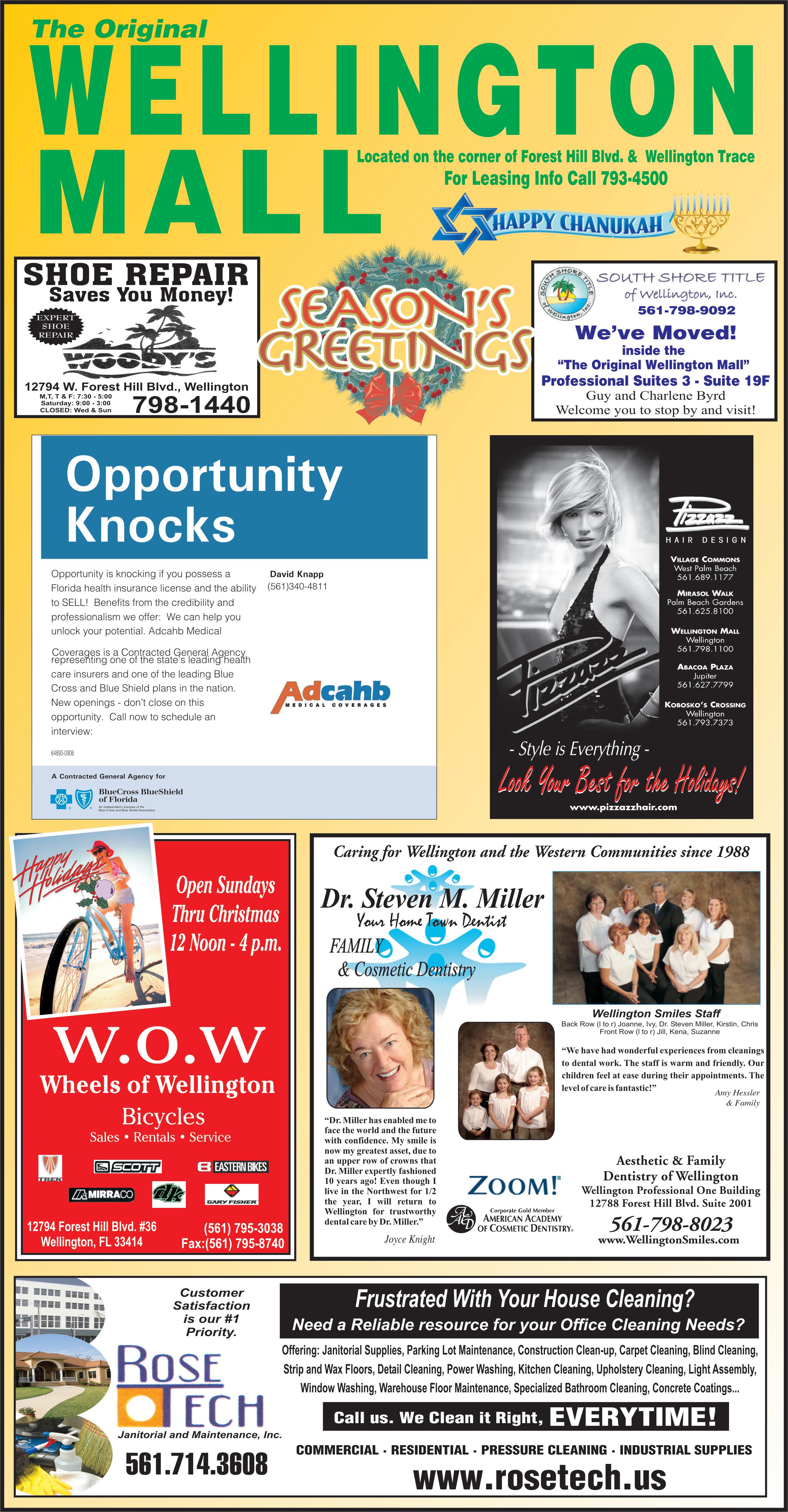 • The Wellington library (1951 Royal Fern Drive) will feature “Let It Snow!” on Wednesday, Dec. 17 at 11 a.m. for ages three and up, featuring stories about a winter wonderland and a special wintry craft. Call (561) 790-6070 to pre-register.