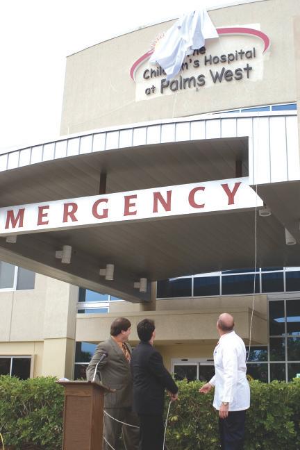 Palms West Hospital CEO Bland Eng said that the hospital has worked hard in the last few years to develop a facility delivering first-rate pediatric services. “The only thing missing was a name and separate distinction of being a children’s hospital,” he said.