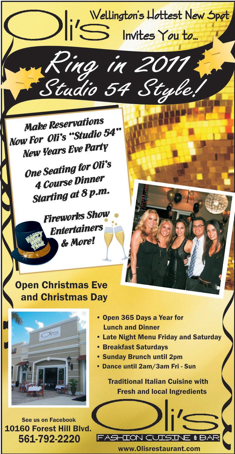• Caribbean-Americans for Community Involvement (CAFCI) will host its 21st annual New Year’s Eve Dinner Dance on Friday, Dec. 31 at the Royal Palm Beach Cultural Center (151 Civic Center Way, Royal Palm Beach). Doors open at 8 p.m. and dinner will be served at 9 p.m. The event will feature a 50/50 raffle, door prizes, a midnight champagne toast and plenty of entertainment in the usual CAFCI manner. Admission is a donation of $45 per person. For ticket information, See CALENDAR, page 47
