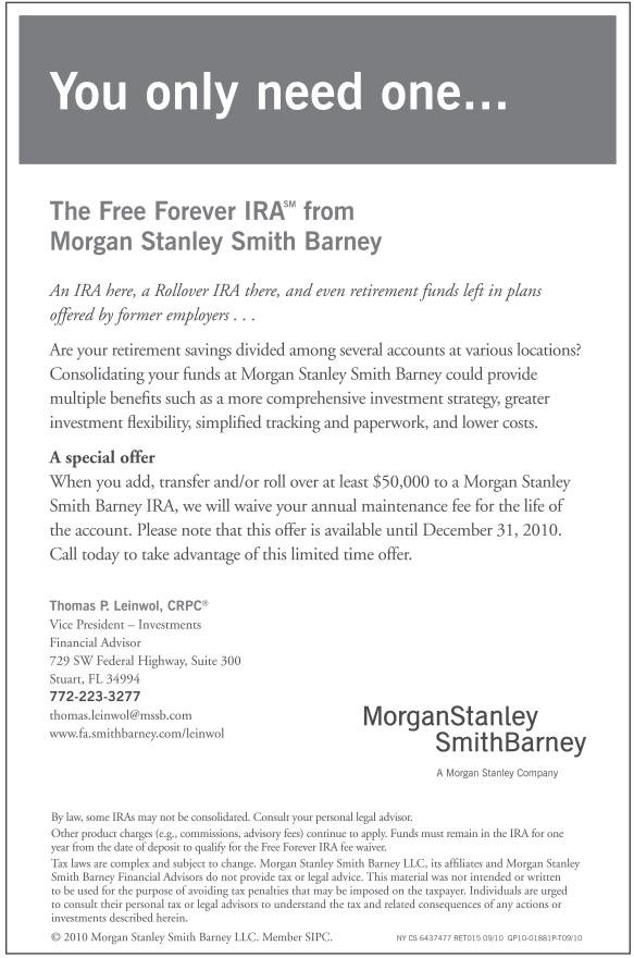 • The Northern Palm Beach Chapter of the American Business Women’s Association will meet Wednesday, Jan. 12 at the PGA Doubletree Hotel in Palm Beach Gardens. Networking will take place from 6 to 6:30 p.m. with the dinner and program beginning at 6:30 p.m. The cost is $35, and guests are welcome. The speaker will be Hilda Porro with a program titled “Energizing for 2011.” To make reservations, or for more info., call Sharon Maupin at (561) 624-3816. For additional information about the ABWA’s Northern Palm Beach Chapter, call Chapter President Carol O’Neil at (561) 389-1227 or visit the chapter’s web site at www.abwapbflorida.org.