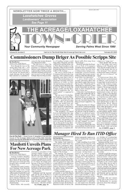 continued from page 1 year plan, saying that he and his staff had met with representatives of the South Florida Water Management District and the U.S. Army Corps of Engineers to raise concerns about Roebuck Road’s proximity to the West Palm Beach Water Catchment Area.