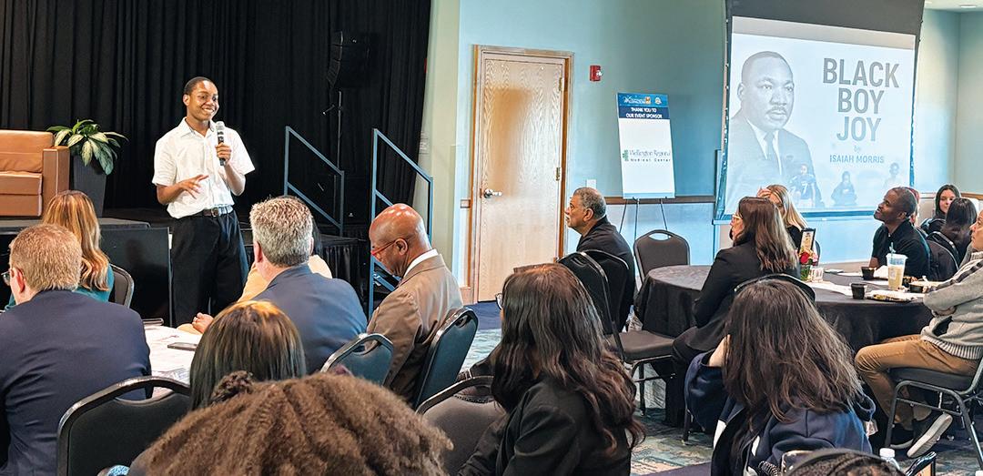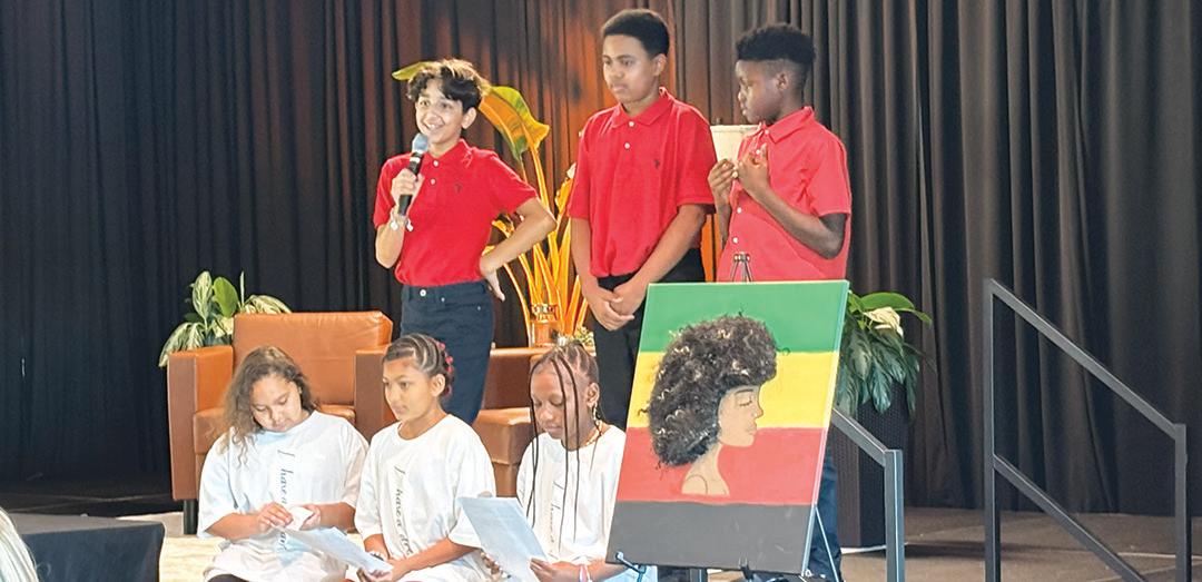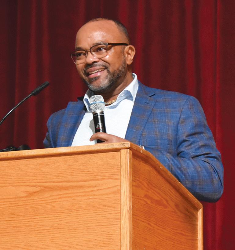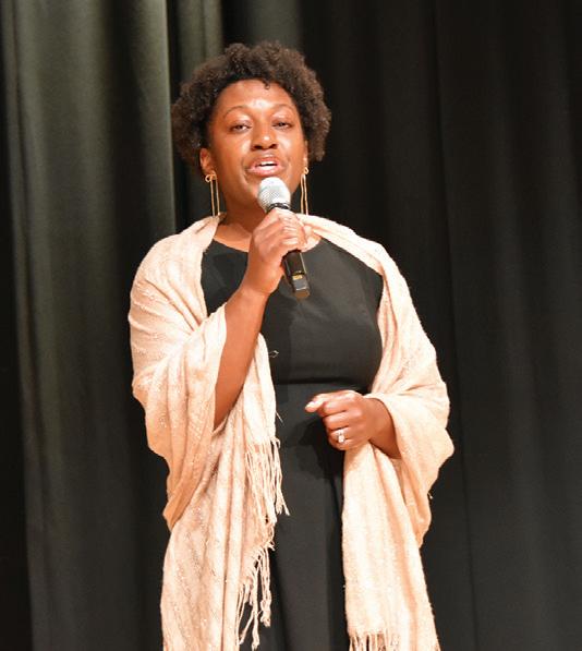 24th annual Dr. Martin Luther King Jr. Day Celebration on Monday, Jan. 19 at the Royal Palm Beach Cultural Center. The theme was “Mentoring the Dream: Where Do We Go from Here?” The keynote speaker was leadership coach Dr. L. Oliver Robinson, and the program included an array of cultural performances. Shown here, Jannette Sharpe-Paul welcomes attendees. MORE PHOTOS, PAGE 18 PHOTO BY DENISE FLEISCHMAN/TOWN-CRIER