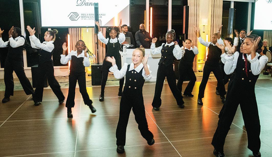 On Friday, Jan. 9, the 38th annual Wellington Dinner Dance to benefit the Neil S. Hirsch Family Boys & Girls Club of Wellington was held at the Wycliffe Golf & Country Club. Shown here, Jaene Miranda, president and CEO of the Boys & Girls Clubs of Palm Beach County, is greeted by the Wellington Elite Steppers.