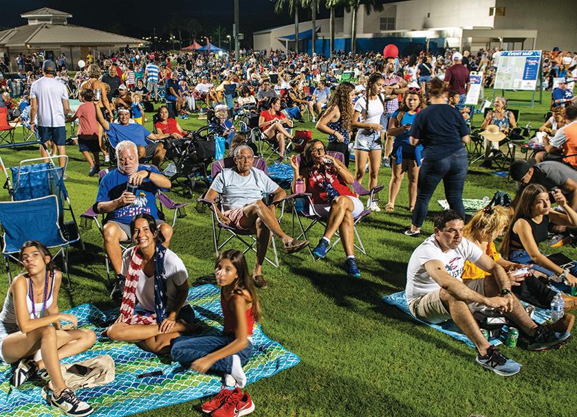The Village of Royal Palm Beach held its annual Star-Spangled Spectacular event at Royal Palm Beach Commons Park on Tuesday, July 4. Thousands of attendees enjoyed a day full of patriotic activities, from fun tournaments to great tribute bands on stage. Shown above are Unified Dream Executive Director Jake Hampu, Gabriel and Alexandra Stone with their painted flag, and volunteer member Jesus Batista. MORE PHOTOS, PAGE 18