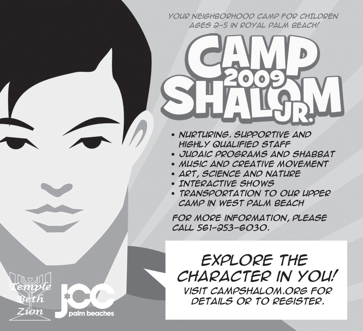 Camp Shalom Jr. West at Temple Beth Zion in Royal Palm Beach — Camp Shalom offers preschool children (ages 2-5) a fun-filled summer in a safe, loving and engaging environment. Campers will enjoy art, science and nature, music and sports. The camp is also a bus stop for Camp Shalom in WPB. For more information, call (561) 253-6030.