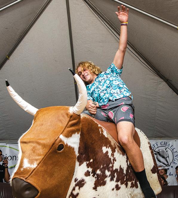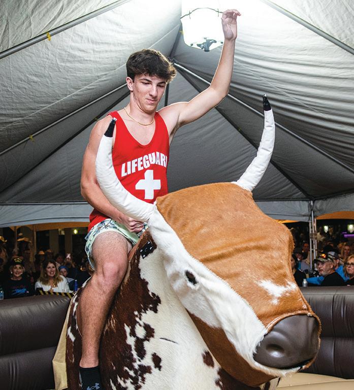 The popular Buck Off Challenge fundraiser for the nonprofit Southeast Florida Honor Flight was held at the Wellington Community Center on Sunday, Feb. 26. During the family-friendly mechanical bull competition, participants were encouraged to dress the part and have fun. To earn points, each rider must remain on the bull for 20 seconds. This year, 10 teams competed. Shown above are Jesse James, Ryder Storm, Charlie James and Chloe Fiegen. MORE PHOTOS, PAGE 5