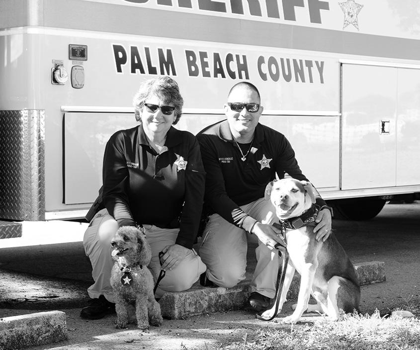 The team includes six deputies, one civilian and eight therapy dogs. PBSO handlers Roy Gonzalez and Teresa Grimaldi were joined by civilian Tania Heatherly at the Wellington event. The trio of handlers were joined by their K9 partners Charlie, Milo and Reggie, respectively. The other PBSO handlers on