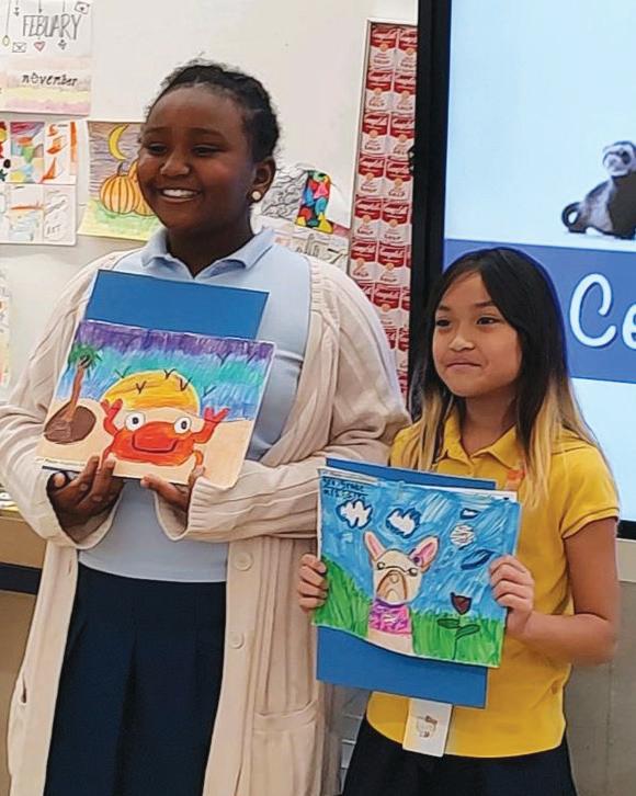 Nyla Dumergeant and Gianna Batchelor. The school’s art teacher, Kim Farnam, encourages, collects and delivers the art to the animal hospital, and the staff there enjoys judging the entries. Winners are then chosen and awards are given