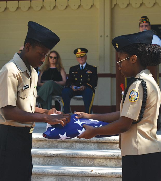 The significance of the event was fully realized when the stirring sounds of bagpipes were followed by the Palm Beach County Fire-Rescue Honor Guard. The scouts cheered and held signs, warmly welcoming the veterans as they made their way through the supportive crowd.