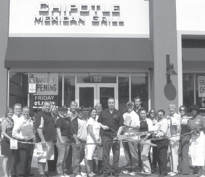 The Palms West Chamber of Commerce joined gourmet burrito restaurant Chipotle Mexican Grill for the grand opening of its Wellington location last Friday. Chipotle burritos and tacos are made with naturally and humanely raised meats from animals that are never given antibiotics or added hormones and are fed a pure vegetarian diet. Chipotle’s Wellington restaurant is located at 1000 State Road 7, Suite 2. Hours are 11 a.m. to 10 p.m. daily. For those who need to get in and out quickly, Chipotle offers “DSL” (don’t stand in line) ordering directly at www.chipotle.com; customers may also fax in to-go orders at (561) 204-2819. For more information, call (561) 204-2816. Pictured here are Chipotle staff with Palms West Chamber of Commerce ambassadors.