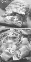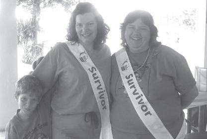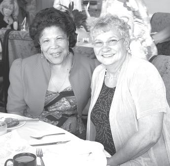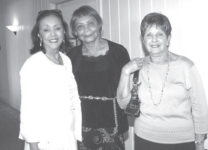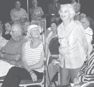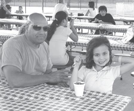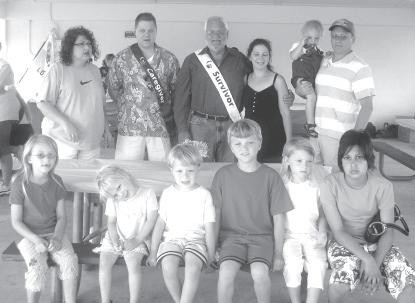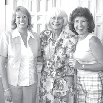 (Above) Kletus Stubblefield (center) with family members. (Below) Elvira Rigolo and Kristine Coates. (Right) Coates serves cake.