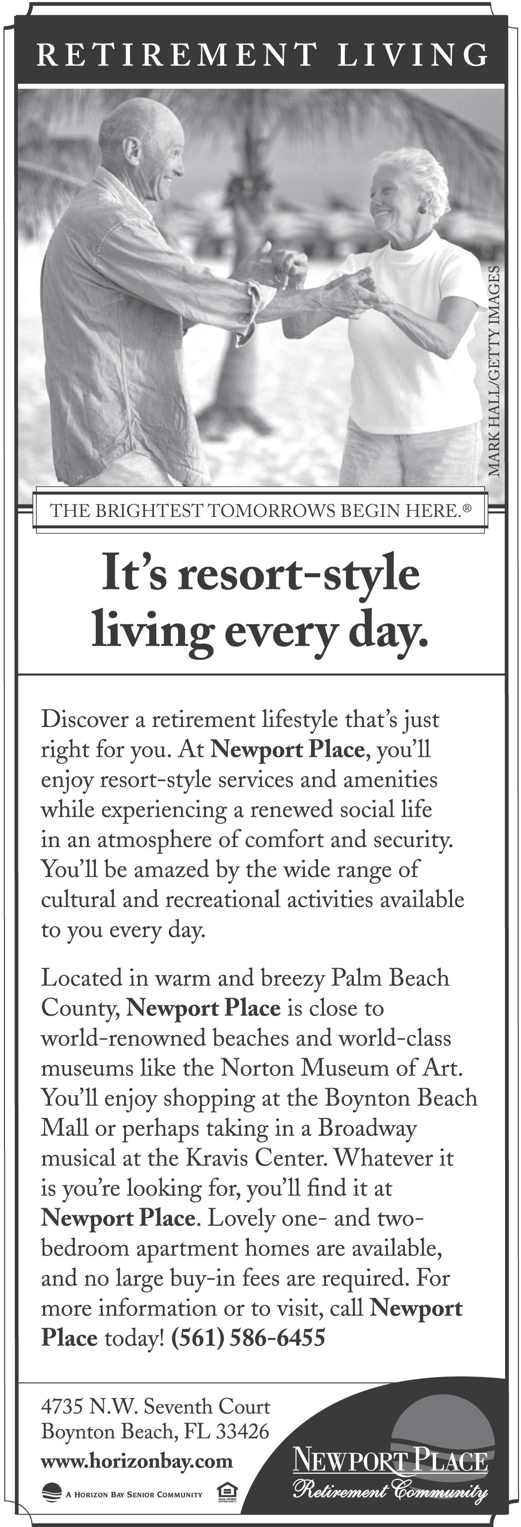 The Carlisle, operated by SRG Senior Living, is located at 450 E. Ocean Avenue in Lantana. For info., call (561) 5339440 or visit www.srgsenior living.com/commpalmbeach.