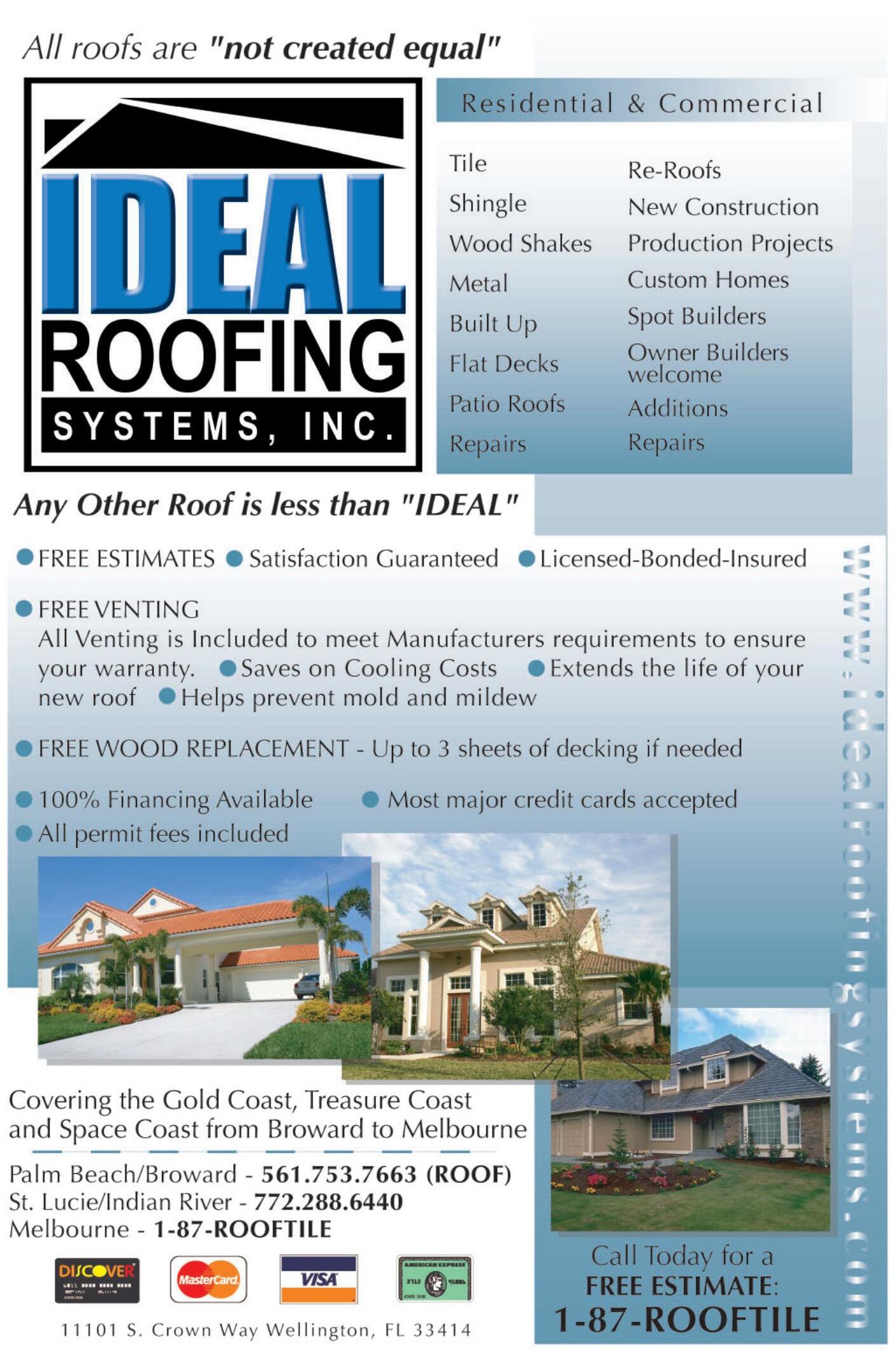 GARABAR, INC. ROOFING & GENERAL CONSTRUCTION — 561-337-6798 www.garabar.com Lic. #CGC 1510976 CCC1327252. “Deal” Direct with owner. * Please see our display ad* Major credit cards accepted. Fast Free Estimates. Insurance claim specialists.