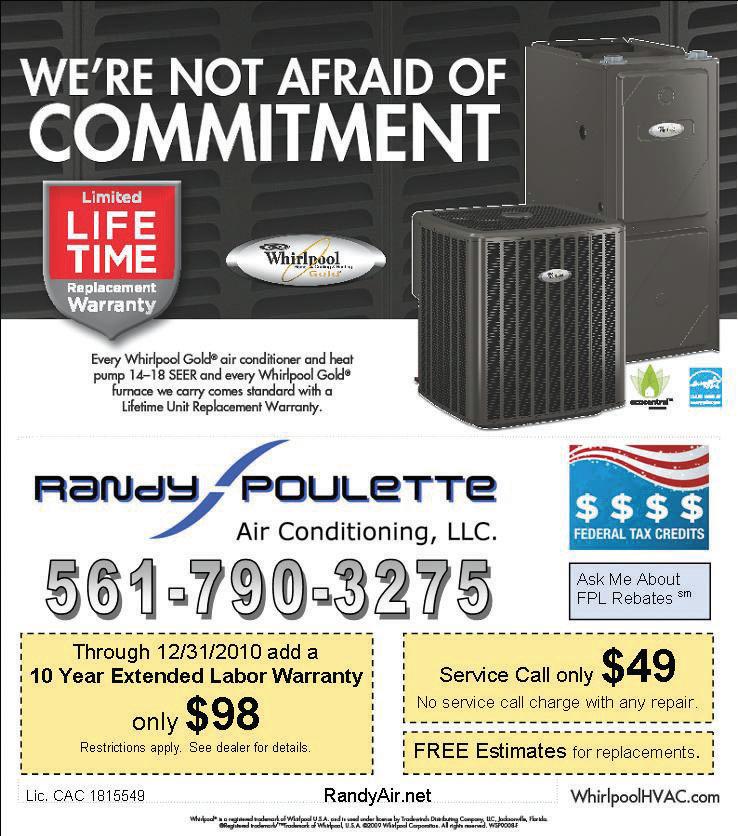 JOHN C. HUNTON AIR CONDITIONING & REFRIGERATION, INC. —Service & new installation FPL independent participating contractor. Lic. CAC 057272 Ins. "We are proud supporters of the Seminole Ridge Hawks" 561-798-3225. Family Owned & Operated since 1996. Credit Cards Accepted