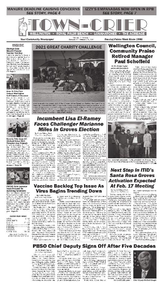 The city contracts with the Palm Beach County Sheriff’s Office for police protection in the 6.5-squaremile municipality, which has been one of the fastest growing in the state over the last few years. It was incorporated in 2016 and now has some 4,000 homes and approximately 8,500 residents. Westlake is expected to have approximately 6,500 homes at buildout. Langowski, now an aide to U.S. Sen. Ashley Moody (R-FL), said he does not know if he will face opposition but would not be upset if he did.