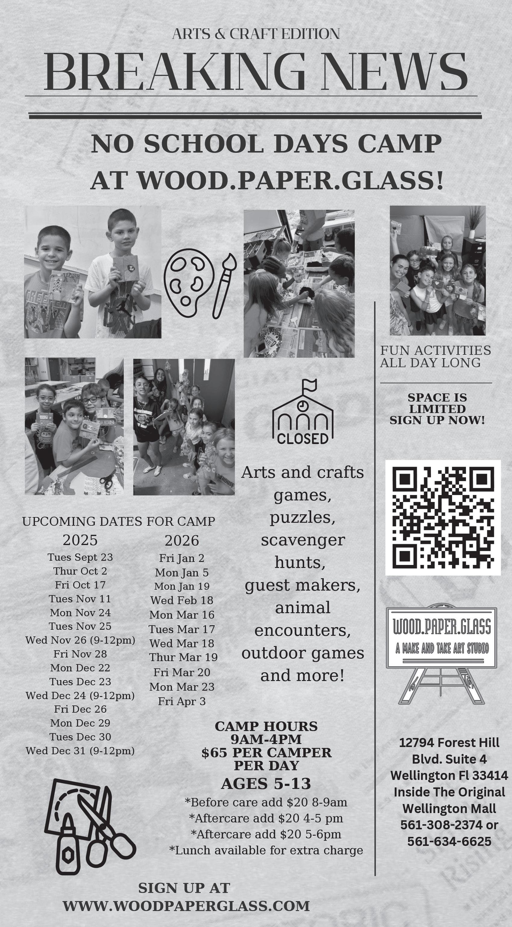 School, Emerald Cove Middle School, Equestrian Trails Elementary School, Frontier Elementary School, Golden Grove Elementary School, Panther Run Elementary School, Pierce Hammock Elementary School, Polo Park Middle School, Wellington High School, Wellington Landings Middle School and Western Pines Middle School. The School District of Palm Beach County is committed to providing a world-class education for every student. Families can thrive at their excellent neighborhood school or explore a universe of opportunity through the district’s acclaimed choice and career programs. These innovative programs are available for all grade levels, from pre-kindergarten through high school. The school district’s choice application window for the 202627 school year opens on Monday, Nov. 3 at www.mypbchoiceapp. com.