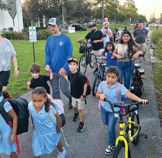 The sidewalks on Big Blue Trace were very crowded on Wednesday, Oct. 8, when Wellington Elementary School participated in National Walk to School Day. Staff, students and their families showed up bright and early for an energetic start to the day. School Board Member Marcia Andrews, Wellington Councilwoman Amanda Silvestri and Councilman John McGovern were happy to be a part of this event as well. The crowd started gathering in front of Temple Beth Torah at 7:15 a.m., and the walk/bike event began promptly at 7:30 a.m. When the children arrived at the school, they received prizes and a drink. More than 300 children participated. Encouraging children to walk/ bike to school is a way to instill active habits that can contribute to a lifelong healthy lifestyle. In addition to the many health benefits, there are also intangible benefits as well. Many parents who have participated in a Walk to School Day say that it has been a valuable way to spend time with their children and to socialize with other parents and neighbors. Also, it cuts down on traffic and pollution.