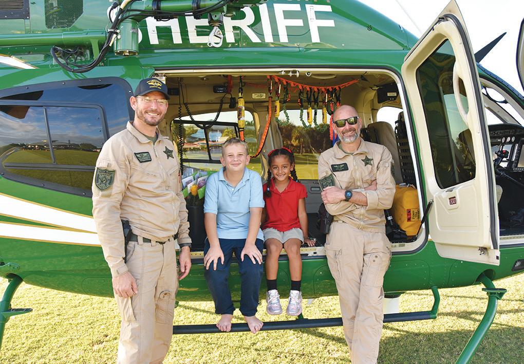 The Palm Beach County Sheriff’s Office held a Night Out Against Crime event on Wednesday, Oct. 15 at Royal Palm Beach Commons Park. The event included free food and treats, crime fighting specialty units on display, K9 therapy dogs, pumpkin carving and arts & crafts. Shown above are Deputy Logan Werner, Jaxon Tufts, Khloe Hudson and Deputy Andy Tucker.