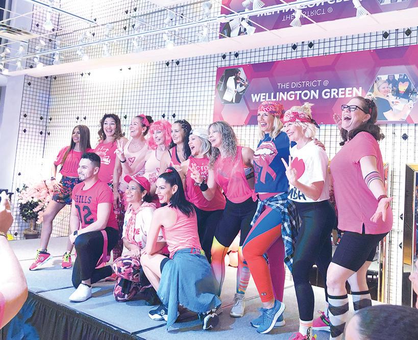 The Mall at Wellington Green held its annual Pink Party on Saturday, Oct. 1, marking the start of Breast Cancer Aware ness Month. The event began with students Emma Nevico and Madison Anderer singing on stage. Then, Lindsay Ben nett from the American Cancer Society let attendees know about her organization and called breast cancer survivors on stage to be honored. The afternoon ended with 14 in structors leading 106 people in a fun Zumba class. Page 16