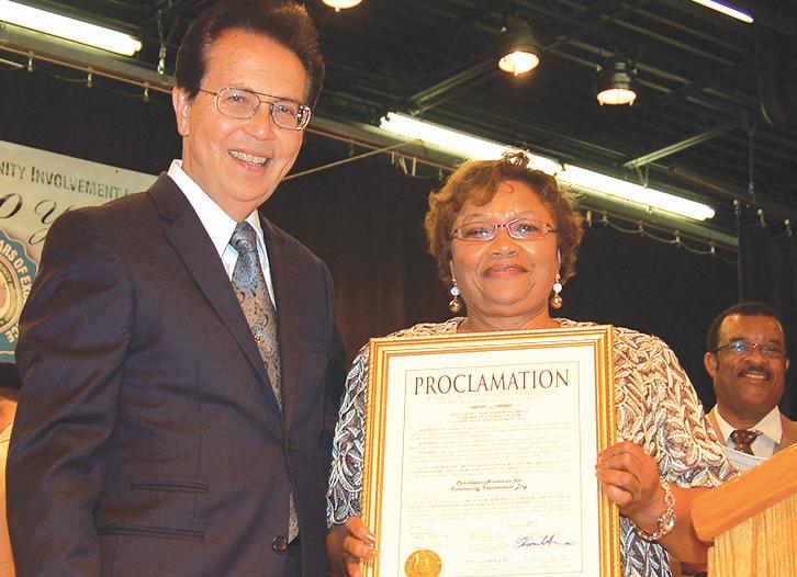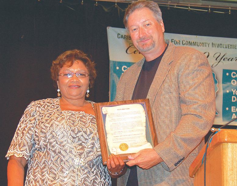 Commissioner Jess Santamaria presents CAFCI President Genieve White with a proclamation declaring Sept. 19 CAFCI Day in Palm Beach County. MORE PHOTOS, PAGE 3