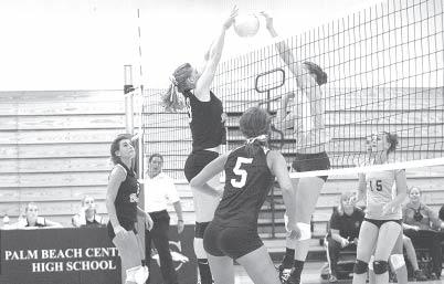 between the Royal Palm Beach High School and the Palm Beach Central High School girls varsity volleyball teams, the Lady Wildcats clawed their way to a 3-2 win on the Broncos’ home turf. Page 17
