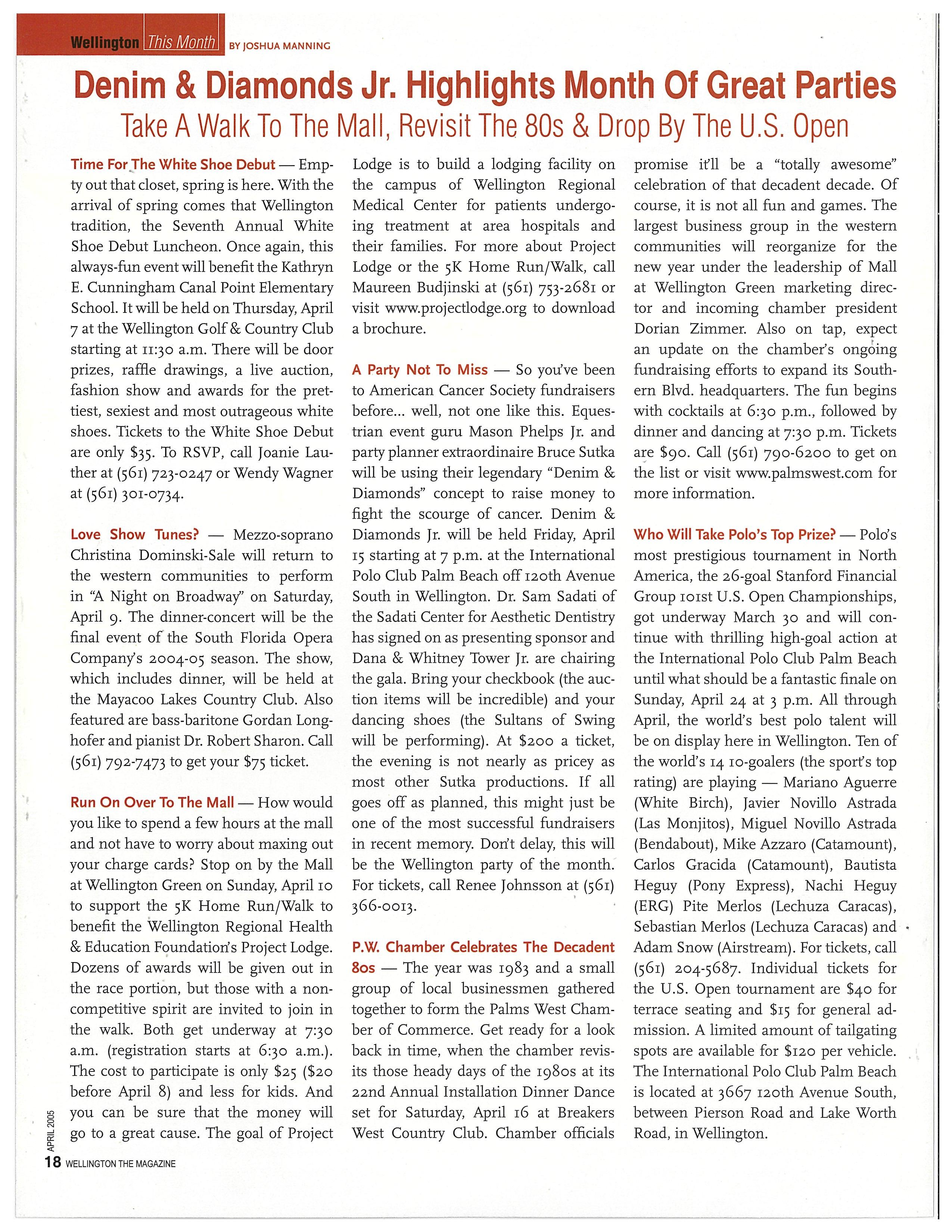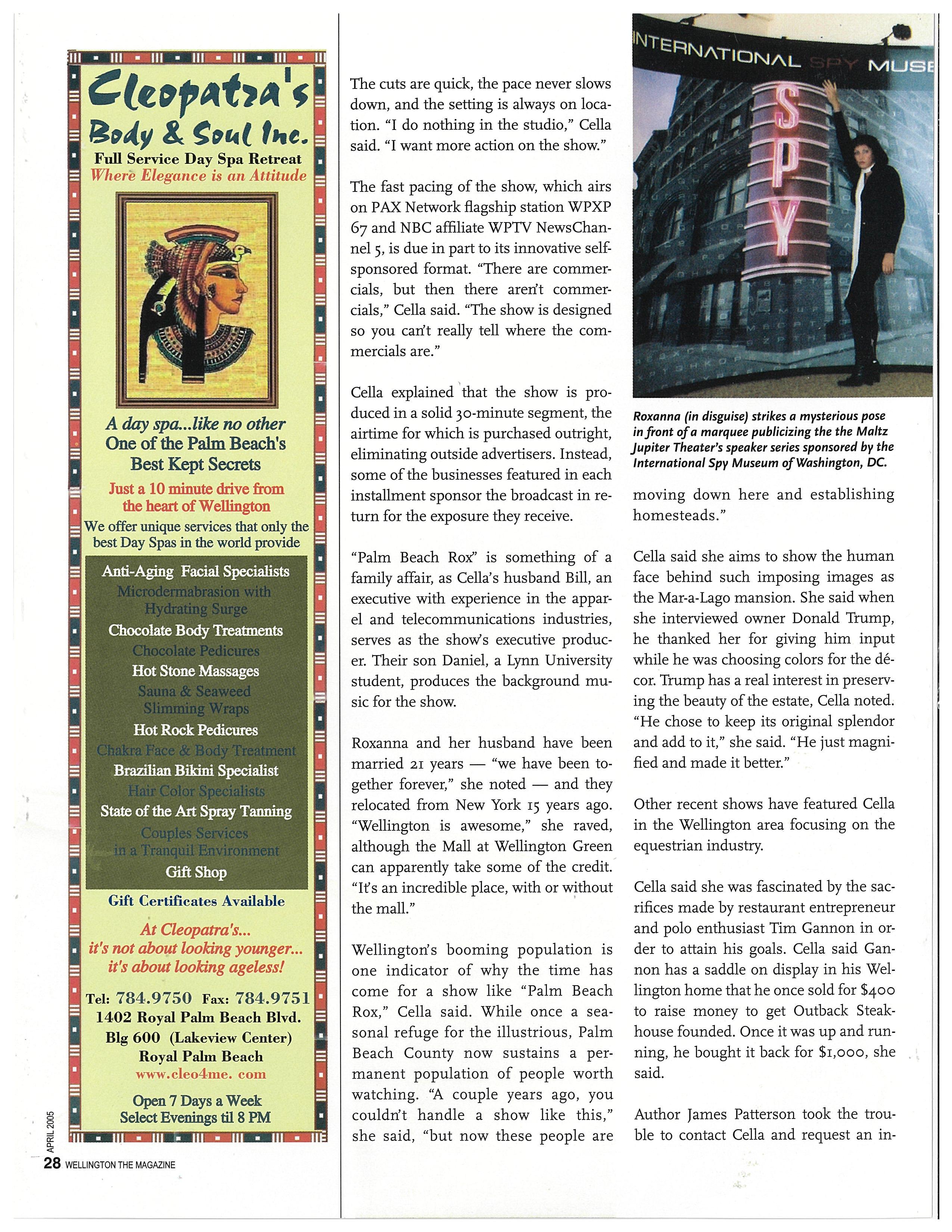 WELLINGTON THE MAGAZINE – April 2005 ON THE COVER: "Palm Beach Rox" host Roxanna Cella of Wellington with the European Smart microcar, photographed