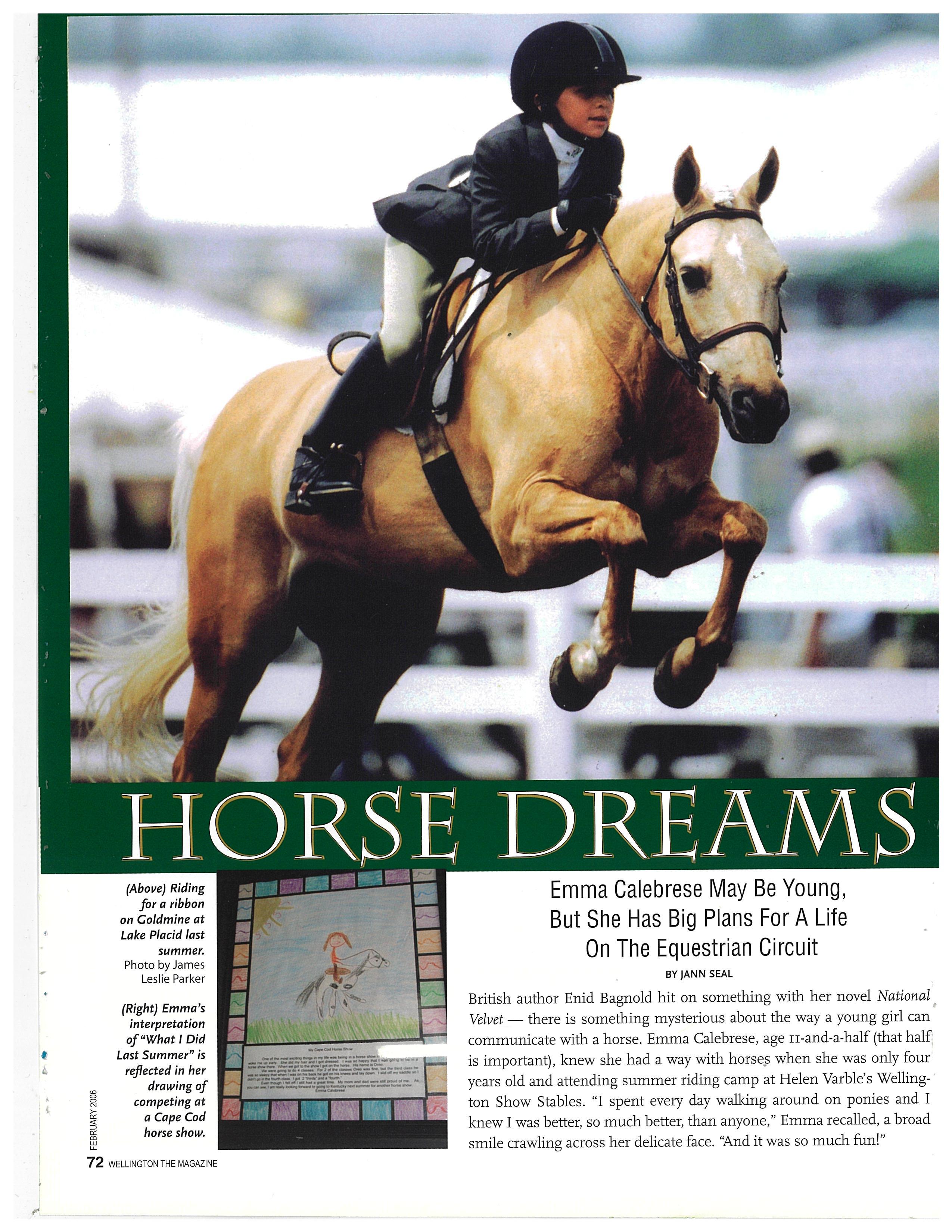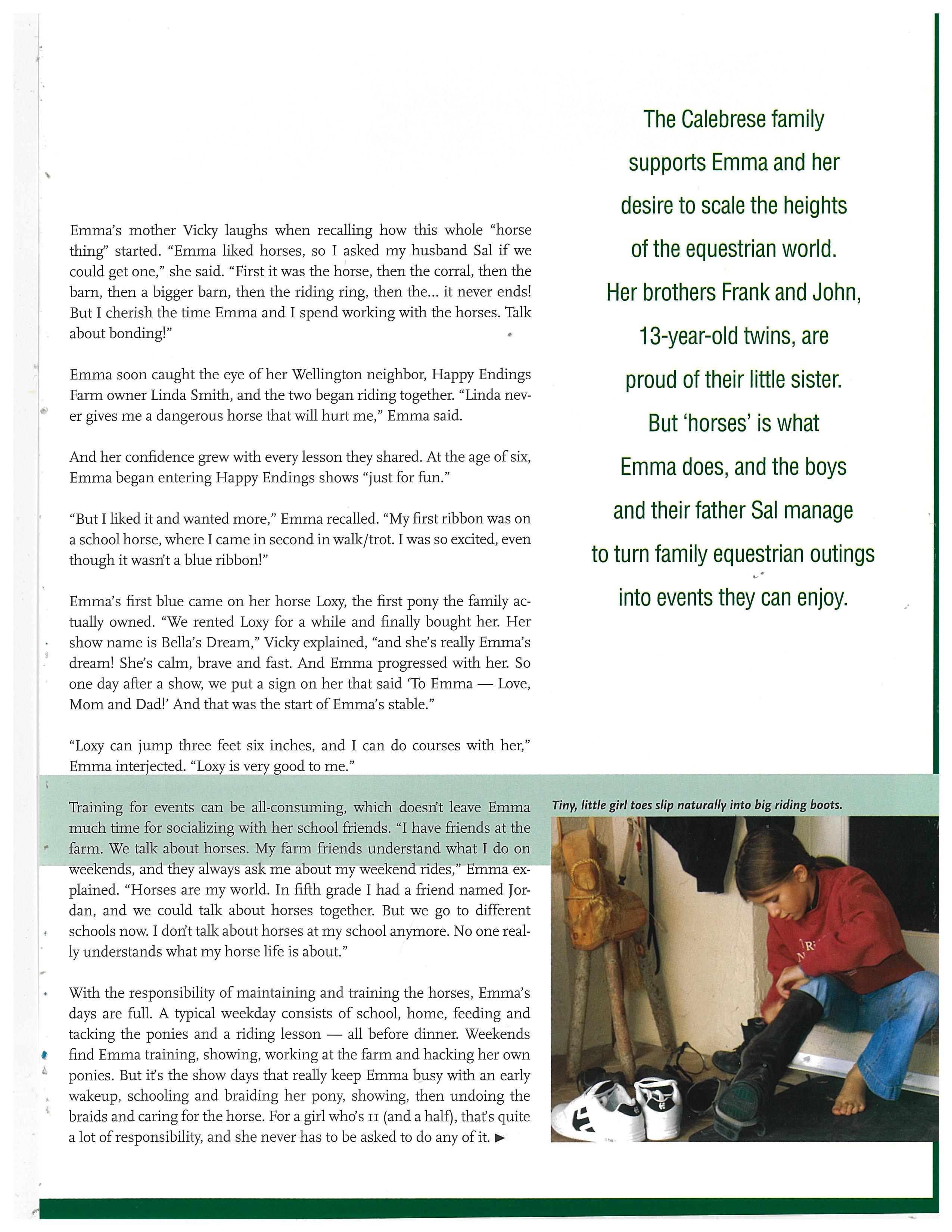 WELLINGTON THE MAGAZINE – February 2006 ON THE COVER: Show jumper Margie Goldstein Engle with Calippo at her Gladewinds Farm in Wellington. Hair and makeup by James Blasi and Francheska C1bell1 at Michael Angelo Salon & Spa. Styled by Amy Rockwerk. PHOTO BY CODY RIVES