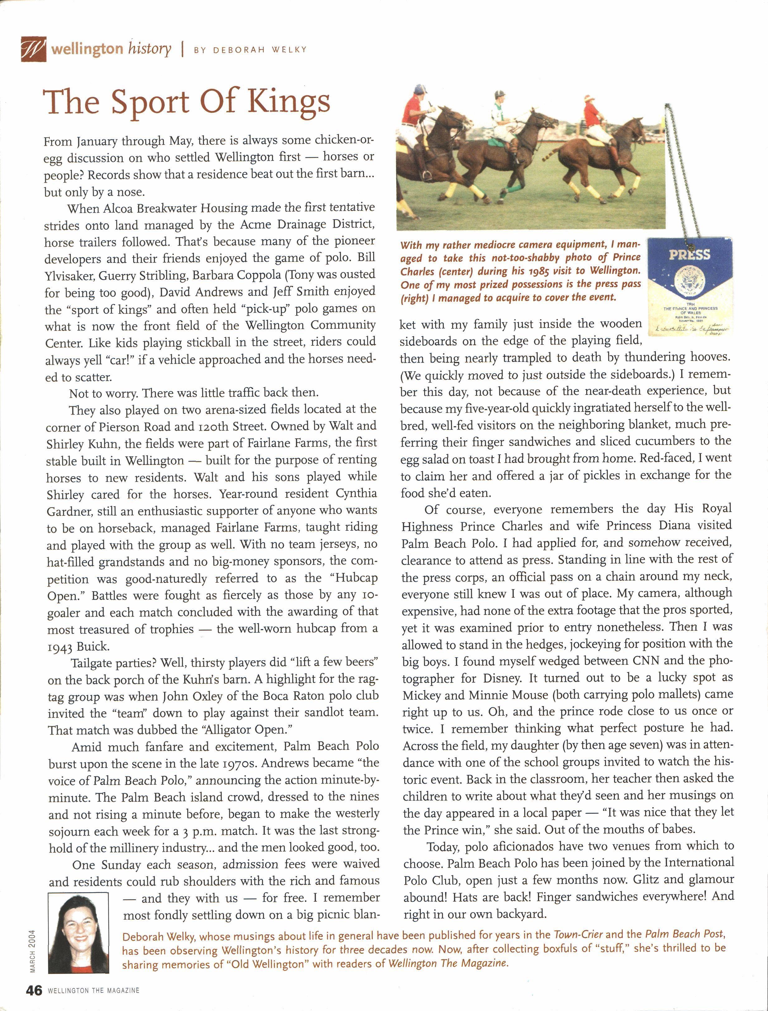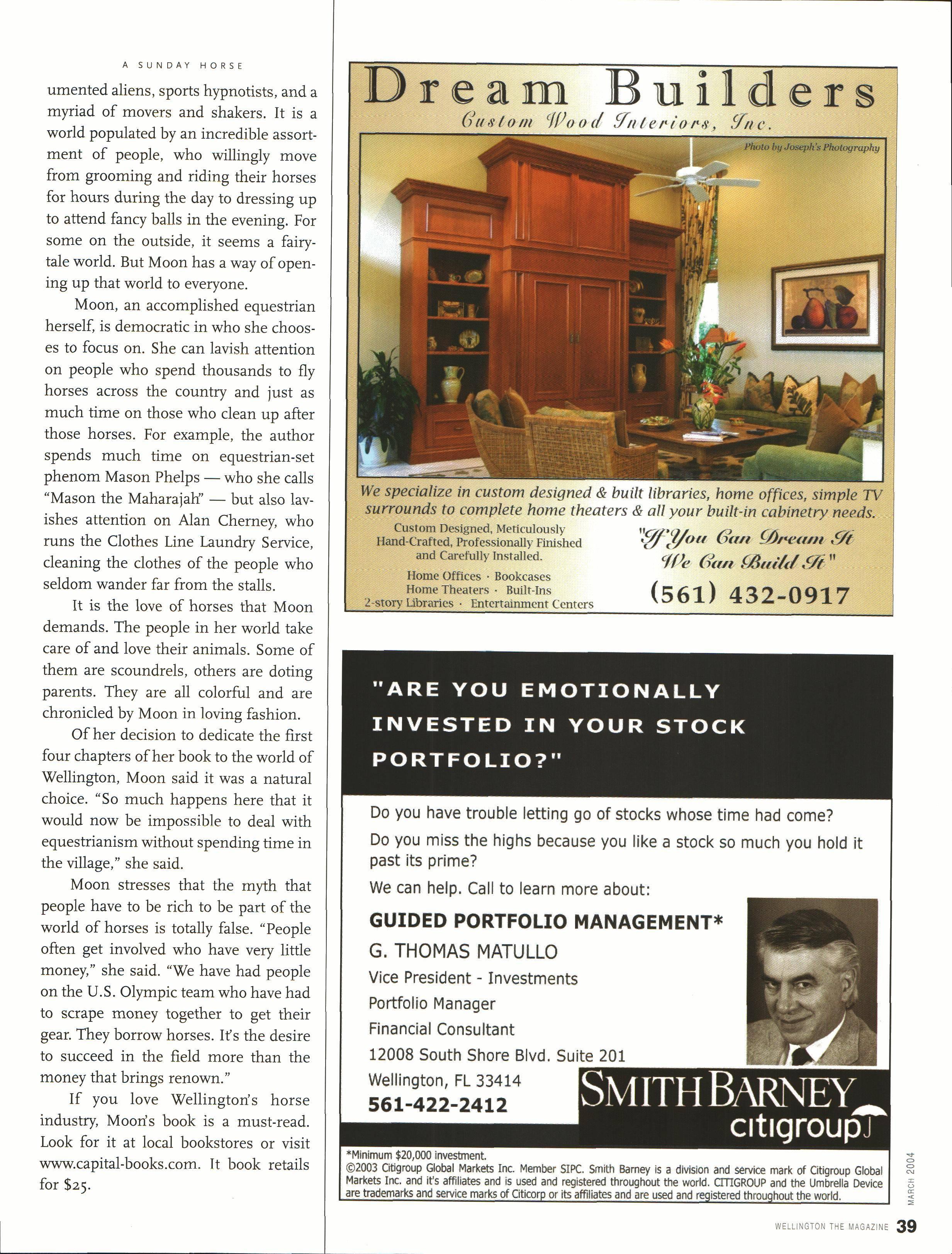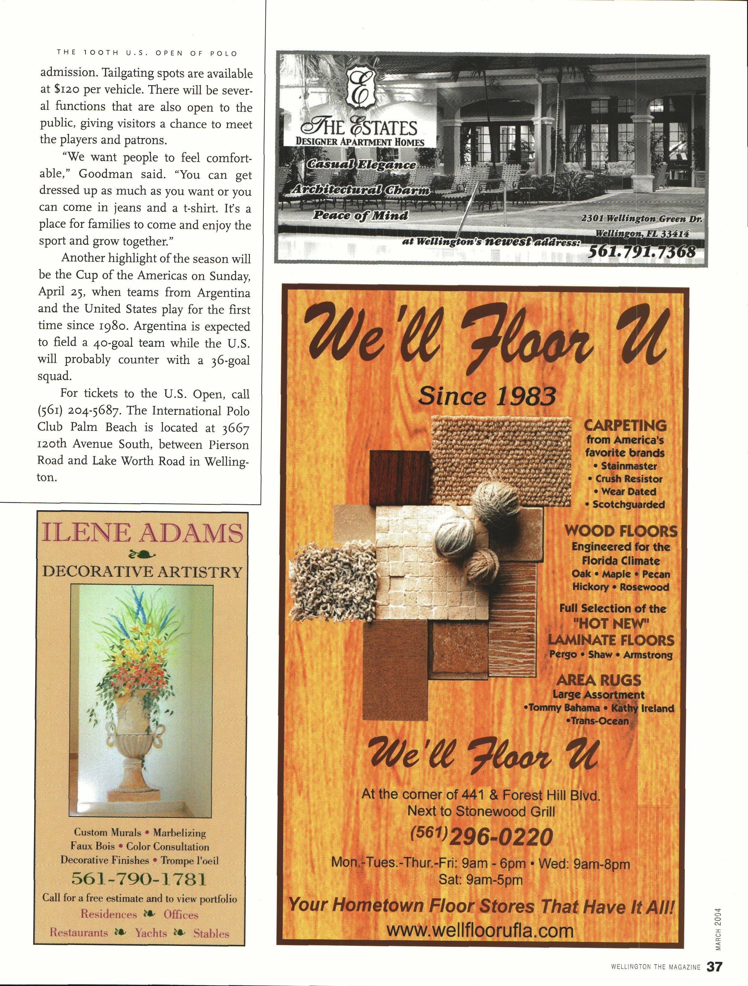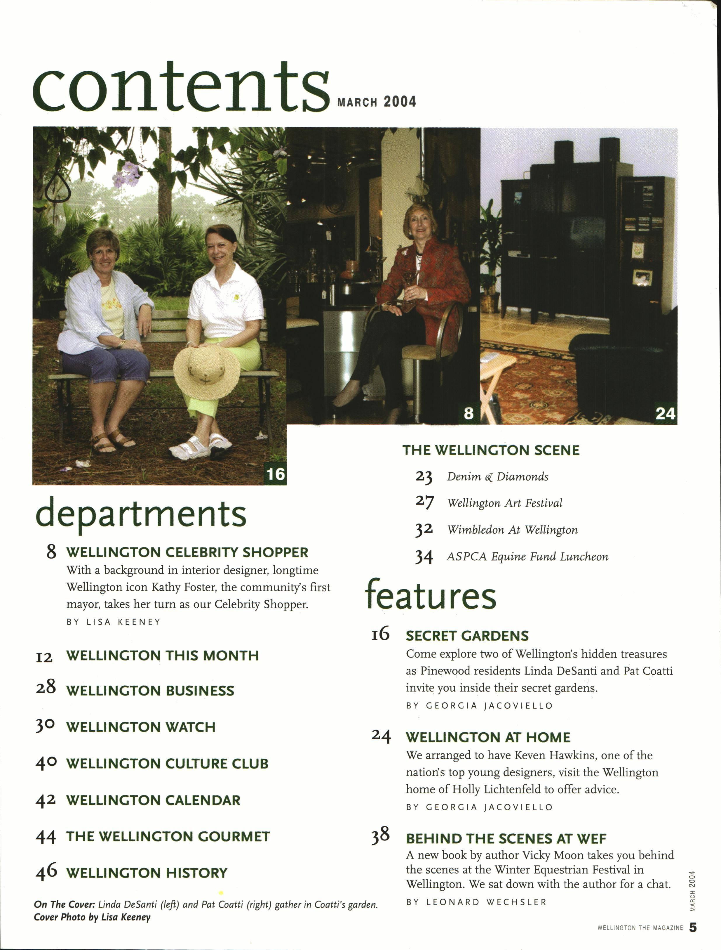 WELLINGTON THE MAGAZINE – March 2004 On The Cover: Linda DeSanti and Pat Coatti, gather in Coatti's garden. Cover Photo by Lisa Keeney | BEHIND THE SCENES AT WEF A new book by author Vicky Moon takes you behind the scenes at the Winter Equestrian Festival in Wellington.